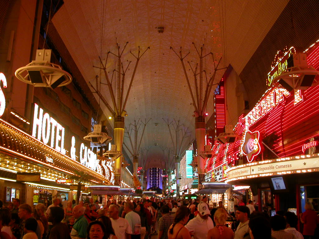 Am Abend besichtigten einige den Strip mit seinen imposanten Casino- und Hotelbauten mit entsprechender Beluchtung und öffentlichen Shows, die die Spieler anlocken sollen. Ich zog es vor nach Downtown ins 'alte' Las Vegas zu fahren und den Abend dort zu geniessen. Ich finde es angenehmer hier im meiner Meinung nach gemütlicheren Teil dieser 'Wüstenoase' bei Strassenmusik und der Licht- / Musikshow in der grossen Halle zu verweilen.
