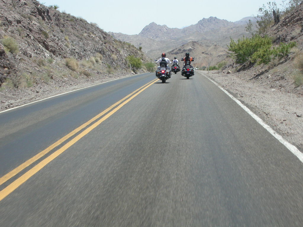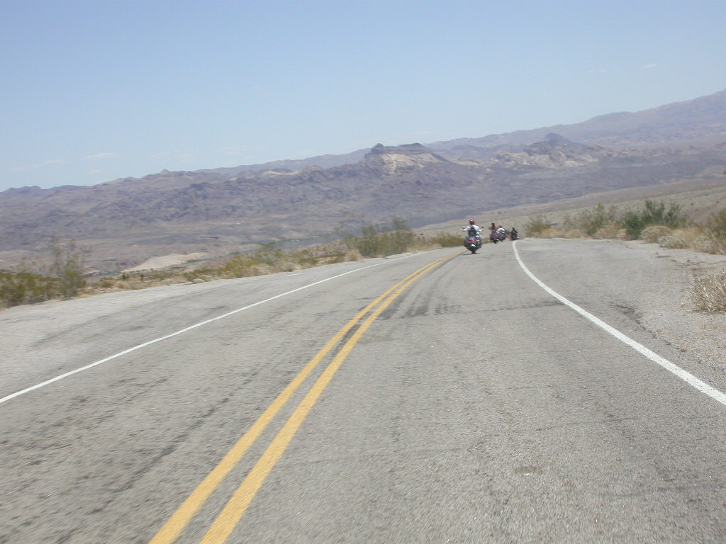 Nach der erneuten Rückfahrt durch den 'El Dorado Canyon' stillten wir unseren Durst in der angehenden 'Ghost Town', der verlassenen Mine mit noch verweisterer Tankstelle aber noch funktionierendem Saloon. Weiter ging die meilenweite Fahrt 'stright ahead' bei brütender Hitze durch das Colorado Valley Richtung der Gambling Town Laughlin am Colorado River. Laughlin ist sicherlich vielen Bikern auch durch die alljährliche River Run Bike Week bekannt.