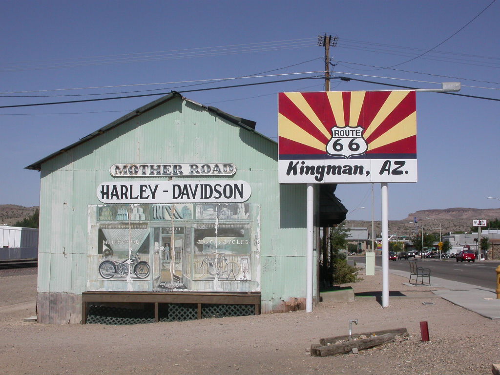 Nach dem einem kurzen Stopp beim lokalen Harley-Dealer wurde das längste noch zusammengehörende Stück der 'Mother-Road' von Kingman nach Seligman in freier Fahrt unter die Räder genommen. Dieses freie Fahren artete aber eher zum freien Jagen im Harley-unüblichen Tiefflugtempo aus und die Zeitzeugen der Route 66, welche zu einem kurzen Stopp einladen, wurden regelrecht links und rechts liegen gelassen.