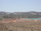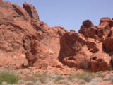 Wir entschlossen uns also trotz der zu erwartenden Hitzefahrt schon zu starten und durchfuhren als erstes das Valley of Fire. Einfach grandios diese roten Felsformationen, die sich links und rechts der Strasse auftürmen. Nach der Fahrt entlang des Lake Mead durchfuhren wir noch kurz die 'Millionärssiedlung' Lake Las Vegas.