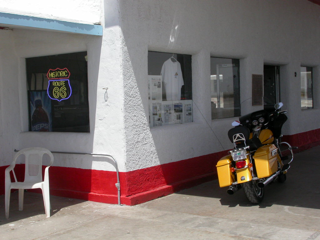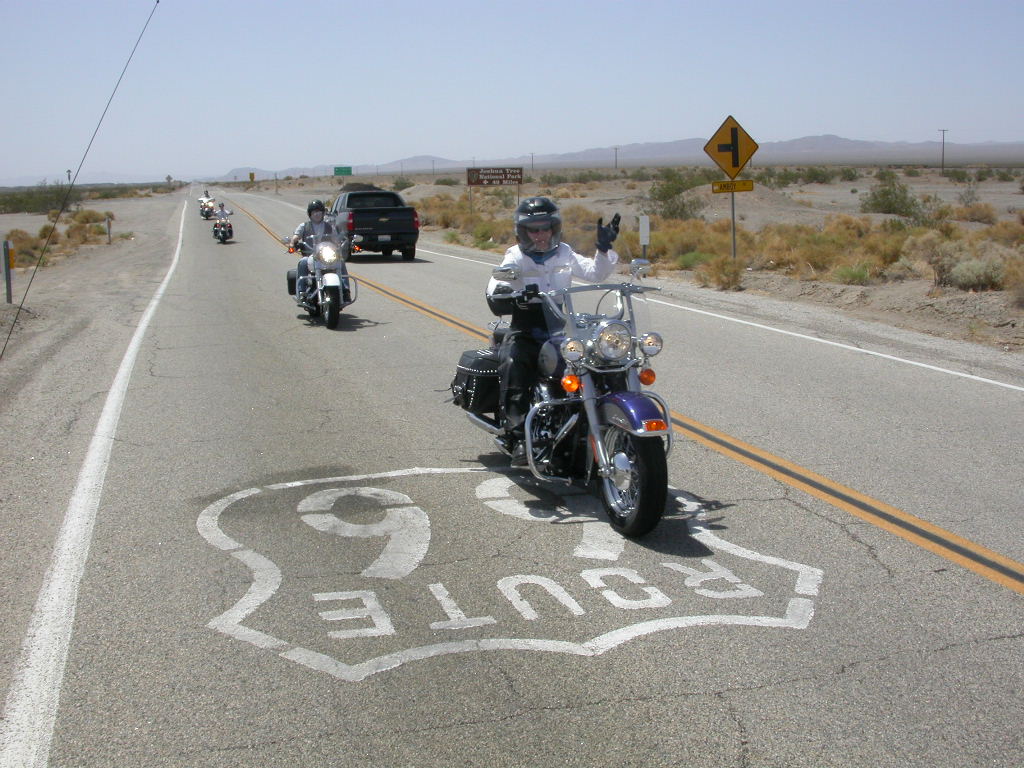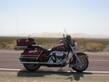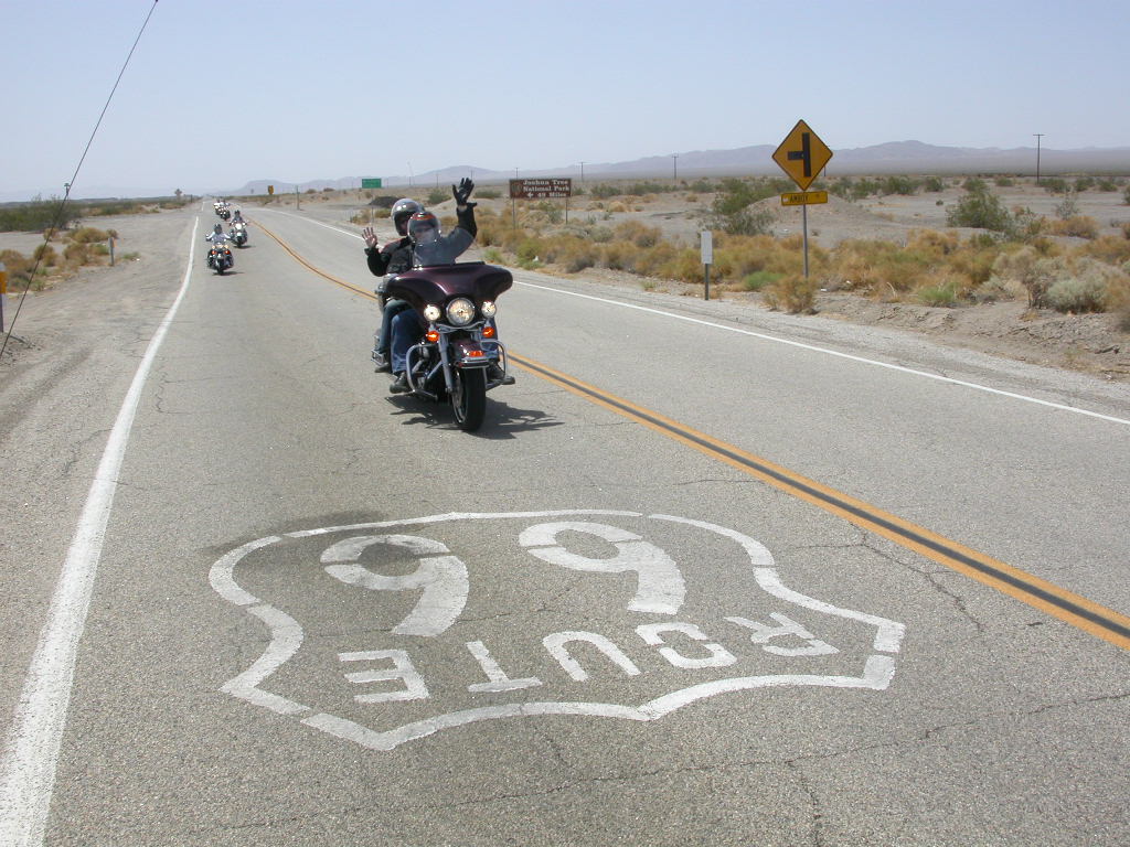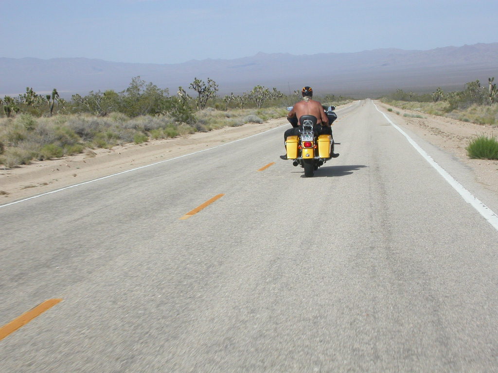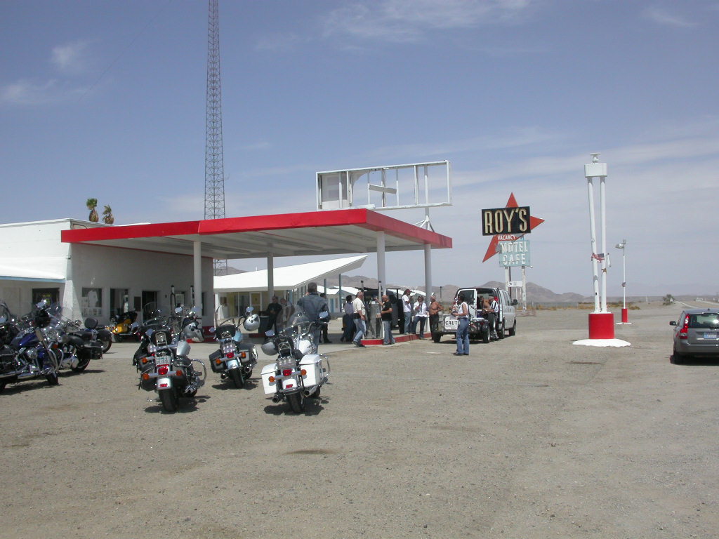 Nach der gestrigen 'Kurvenorgie' holte uns heute die andere Seite des Bikens in den USA ein : Meilenweit 'stright ahead' und der 'Harley-Tempomat' wurde rege benutzt. 40 Minuten nach dem Essen erreichten wir den Old National Trial Highway, die alte Streckenführung der Route 66, der durch den Amboy Crater und dem ausgetrockneten Bristol Salzsee führt. Roys Cafe an der Route 66, den meisten wohl durch zahlreiche Filme und Videos bekannt. (Enrique Iglesias „HERO“), war der nächste Erfrischungsstopp, bevor es über Devils Playground (des Teufels Spielplatz),  vorbei an den Kelso-Dünen weiter quer durch die Mojave Wüste ging!