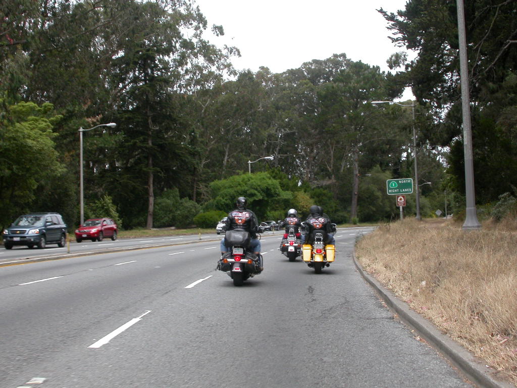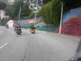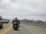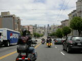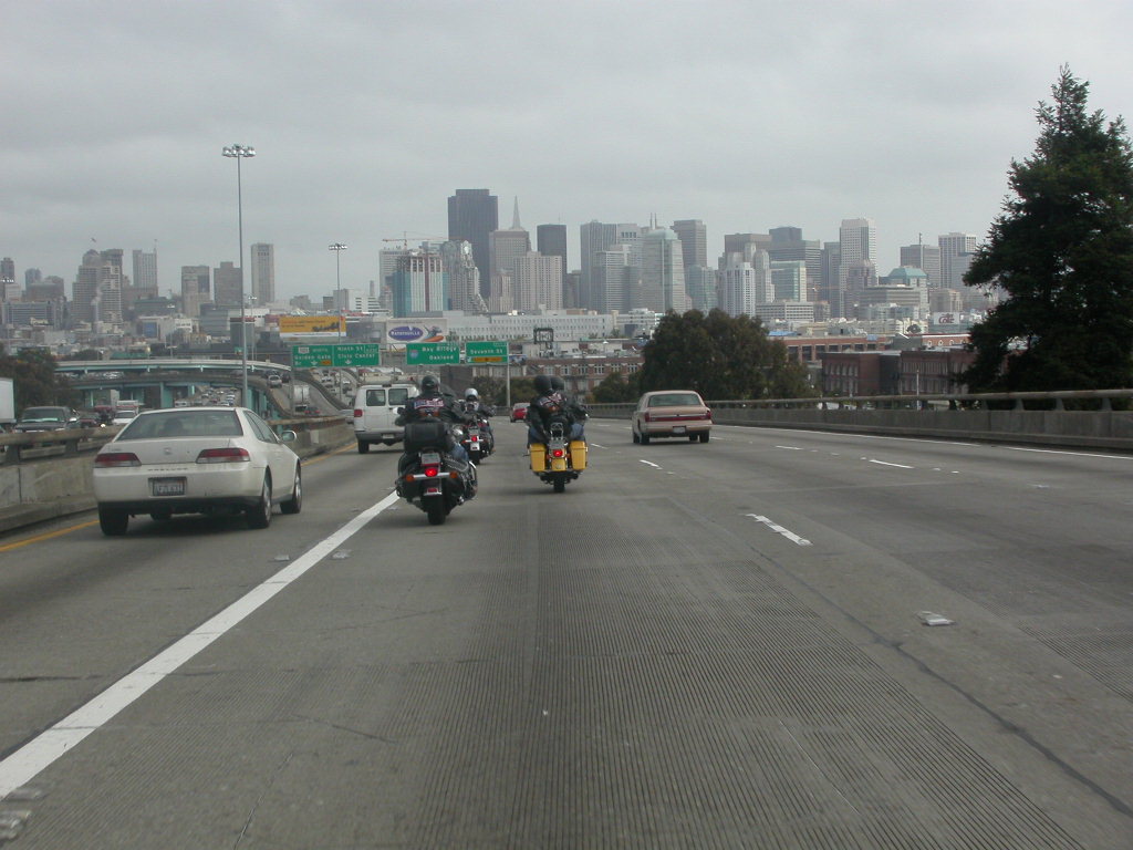 Für das Sight-Seeing in San Francisco stand erstmal 45 Minuten Autobahnfahrt über die Bay und dann in die Stadt hinein auf dem Programm. Es ist schon was ganz anderes hier im dichten Verkehr auf bis zu 6 Spuren, wo links und rechts Überholen erlaubt ist, im Konvoi zu fahren als auf den verlassenen einsamen Strassen der letzten Tage.