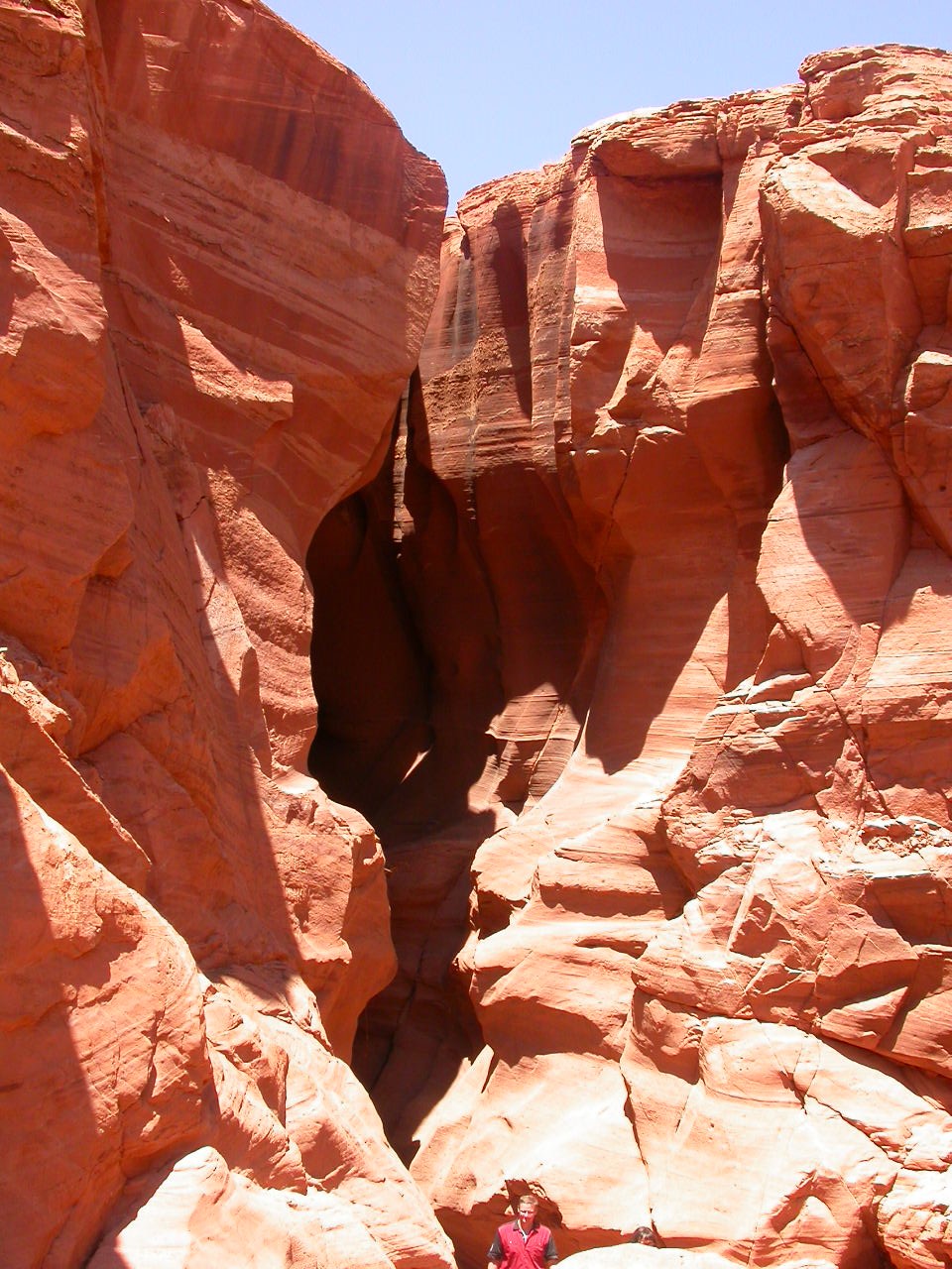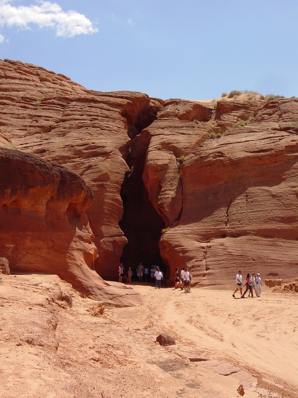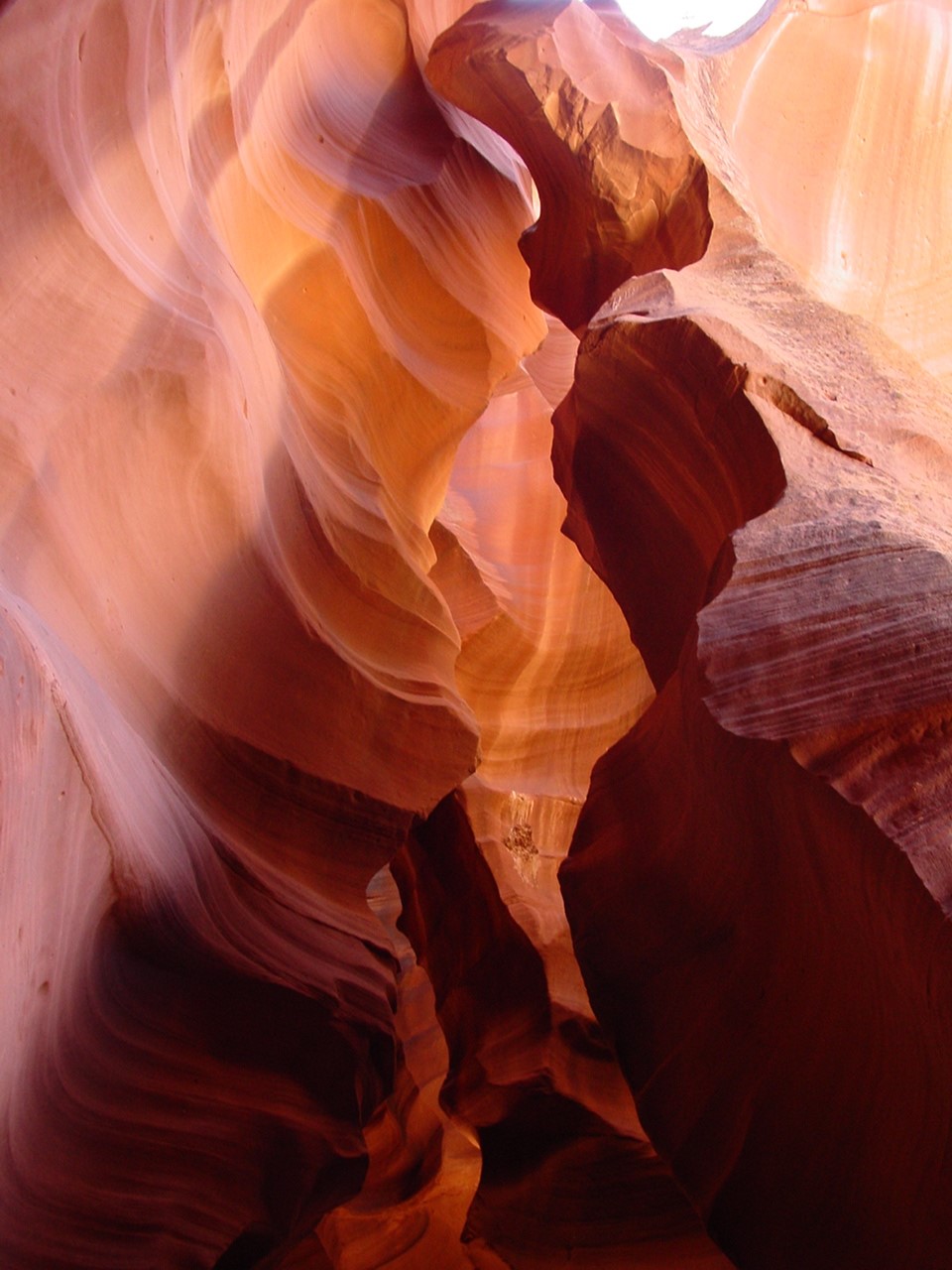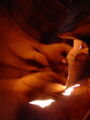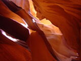 Vor der Weiterfahrt nach Flagstaff, wo wir wieder auf die 'Old Route 66' treffen sollten, besuchten wir noch eine weitere Sehenswürdigkeit der Navajo Indianer, den Antelope Canyon. Diese schmale Schlucht bietet je nach Tageszeit und Sonneneinfall ein Farbenspiel sondergleichen an den Felswänden. Der Canyon ist heute noch im Besitz der Indianer und ein indianisches Kulturgut, dass ihnen nicht von den 'Weissen' gestohlen wurde. Er wurde vor Jahren von einem indianischen Hirtenmädchen entdeckt und dient  heute als touristische Einnahmequelle. Die Besichtigung wird zu Fuss gemacht und durch den Canyon hindurch ist es meistens nur gerade Schulterbreit.