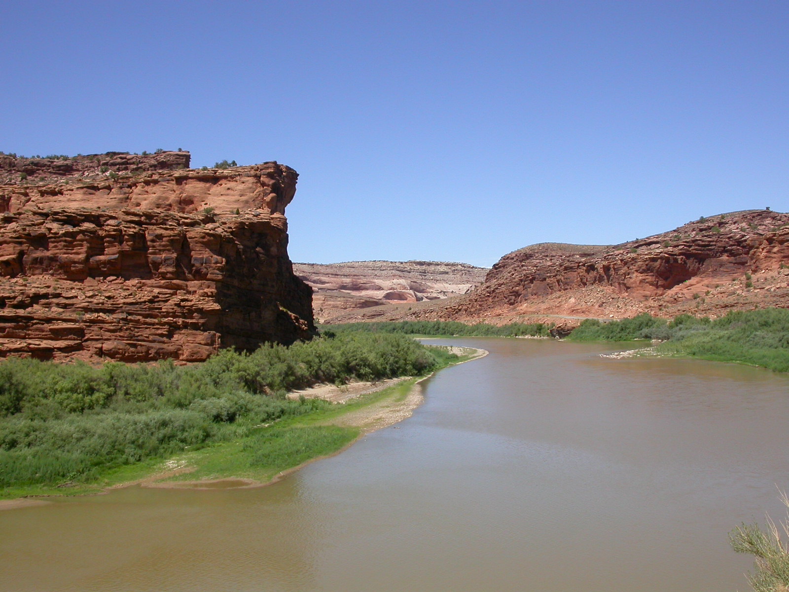 Nach Moab führte eine der schönsten, mir bekannten Routen (UT 128), durch rote Felsen und entlang eines malerischen Flusses, dem Little Colorado River. Diesem sollten wir auf unserer Reise noch mehrmals begegnen.