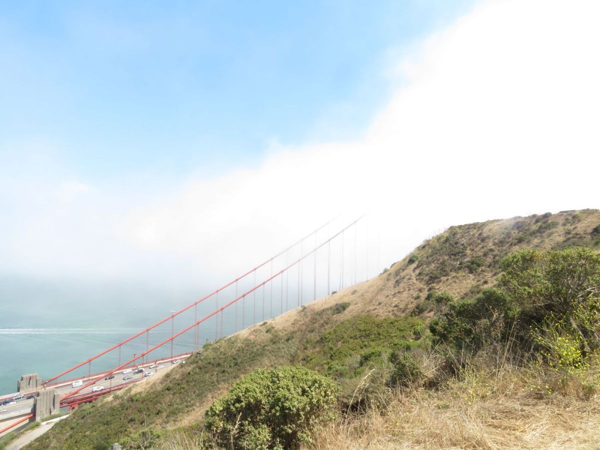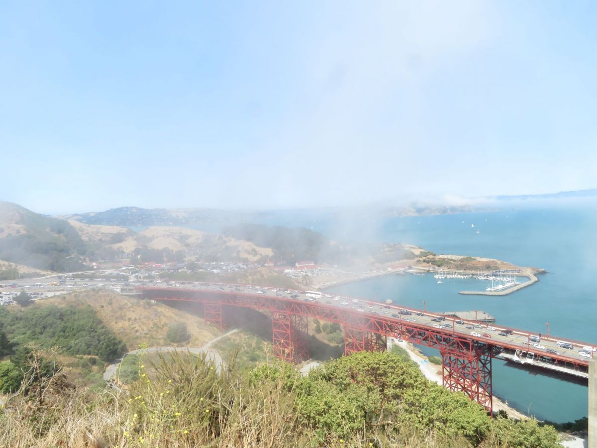 Doch bevor wir über die Golden Gate Bridge unser Tagesziel erreichen, fahren wir noch zu einem Aussichtsplatz von wo wir hoffentlich die nebelfreie Brücke fotografieren können.