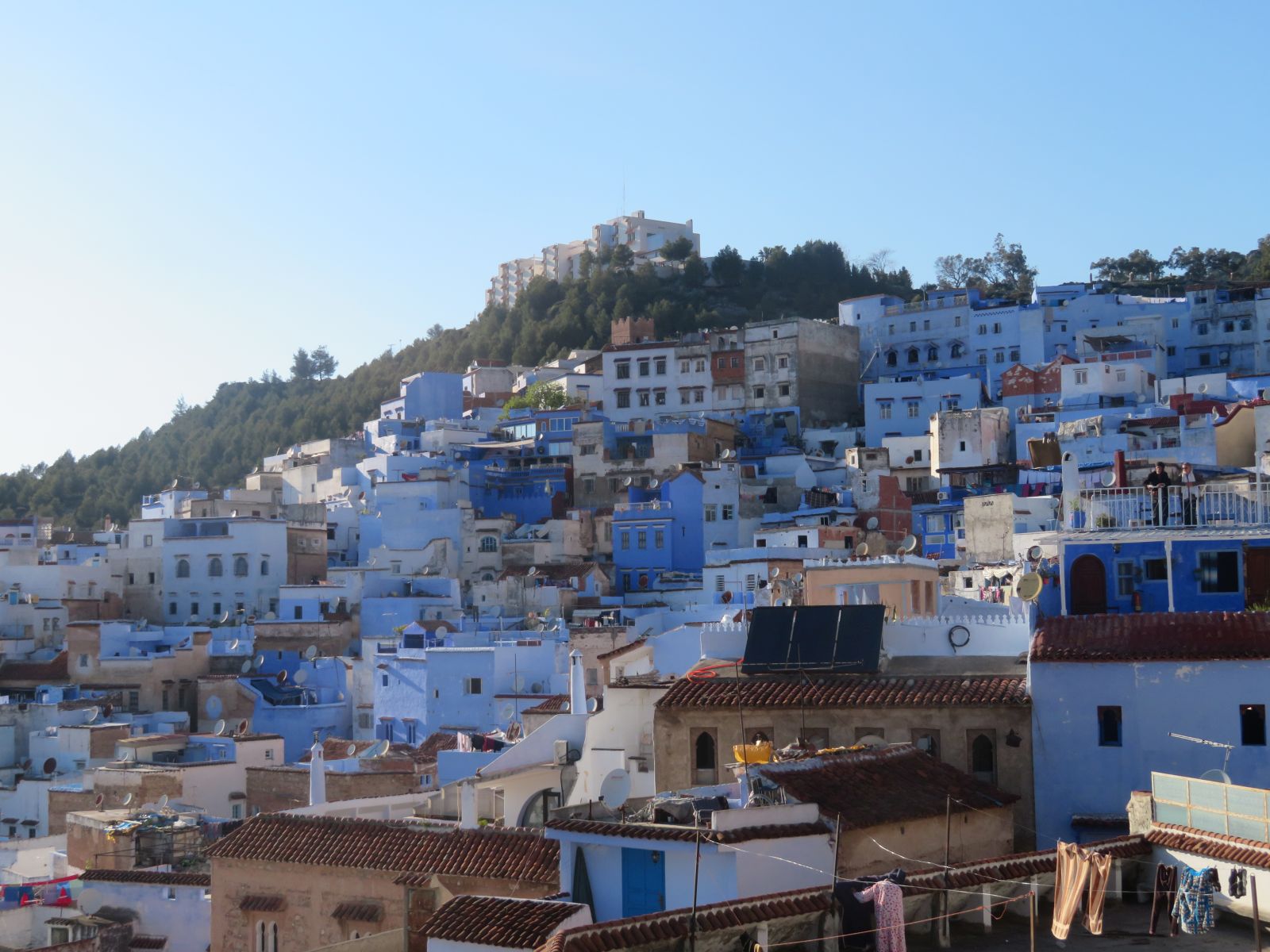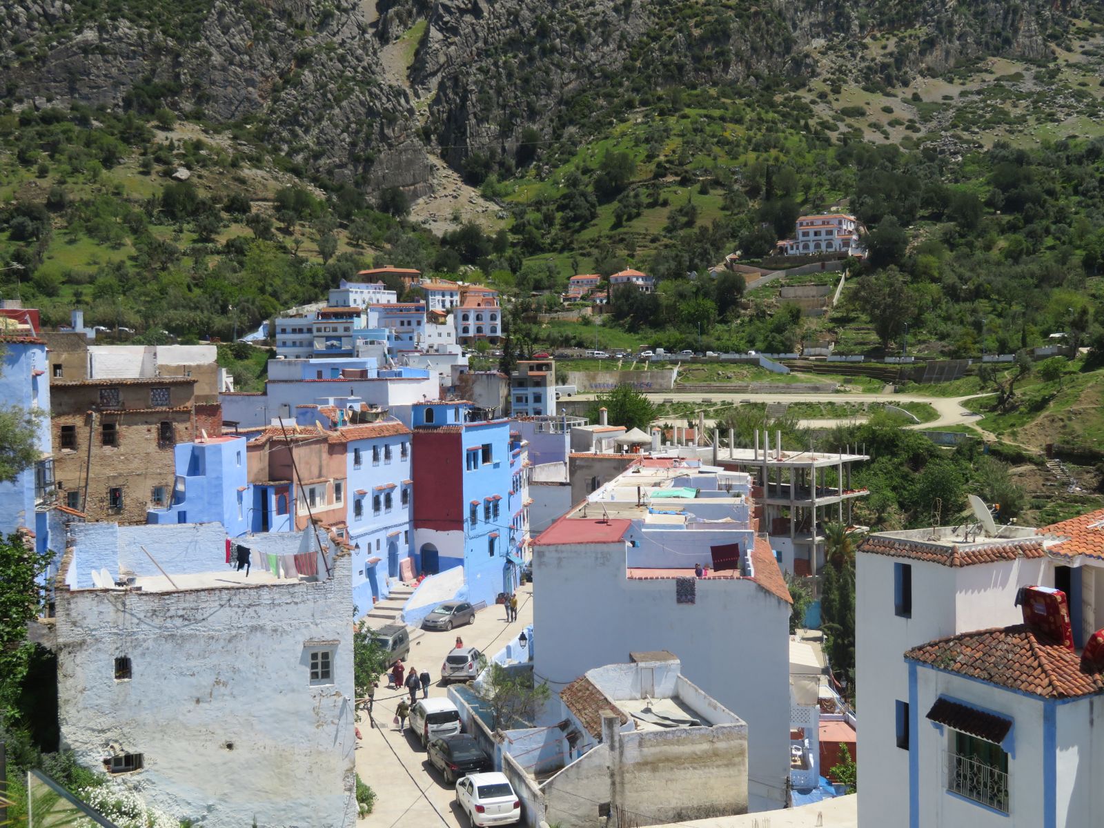 Schon bald erreichten wir Qued Laou, hier bogen wir ins Riffgebirge ab und am frühen Nachmittag kamen wir in Chefchauen an. Unsere Unterkunft, der Parador von Chefchauen, liegt optimal gelegen im Zentrum nahe des Marktplatzes. Nach dem Zimmerbezug schlenderten wir durch die Gassen und das Nachtessen genossen wir auf einer hoch über dem Platz gelegenen Terrasse des Restaurants ‘Casa Aladin’.