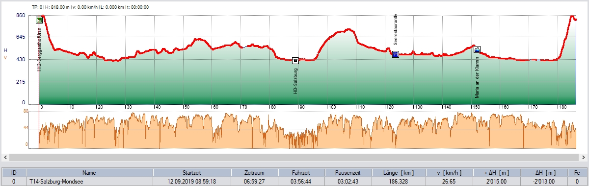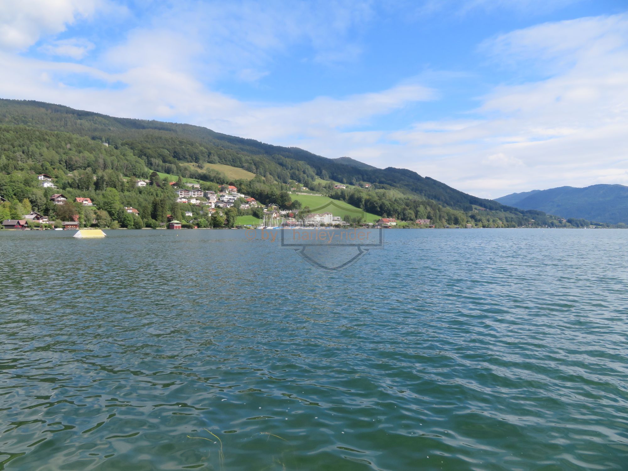 Nach den obligaten Einkäufen und sonstigen Stärkungen war die Zeit soweit vorgerückt, dass wir auf den Stadtbesuch von Salzburg verzichteten. So ging die Tour weiter zum Salzburgring und dann zum Mondsee, an dessen Ufern wir einen Mittags- / Zvierihalt machten. Danach folgte eine der schönsten bisherigen Strecken entlang des Mondsees und über 'Maria an der Klamm' zurück zum Urzn auf dem Gmunderberg.