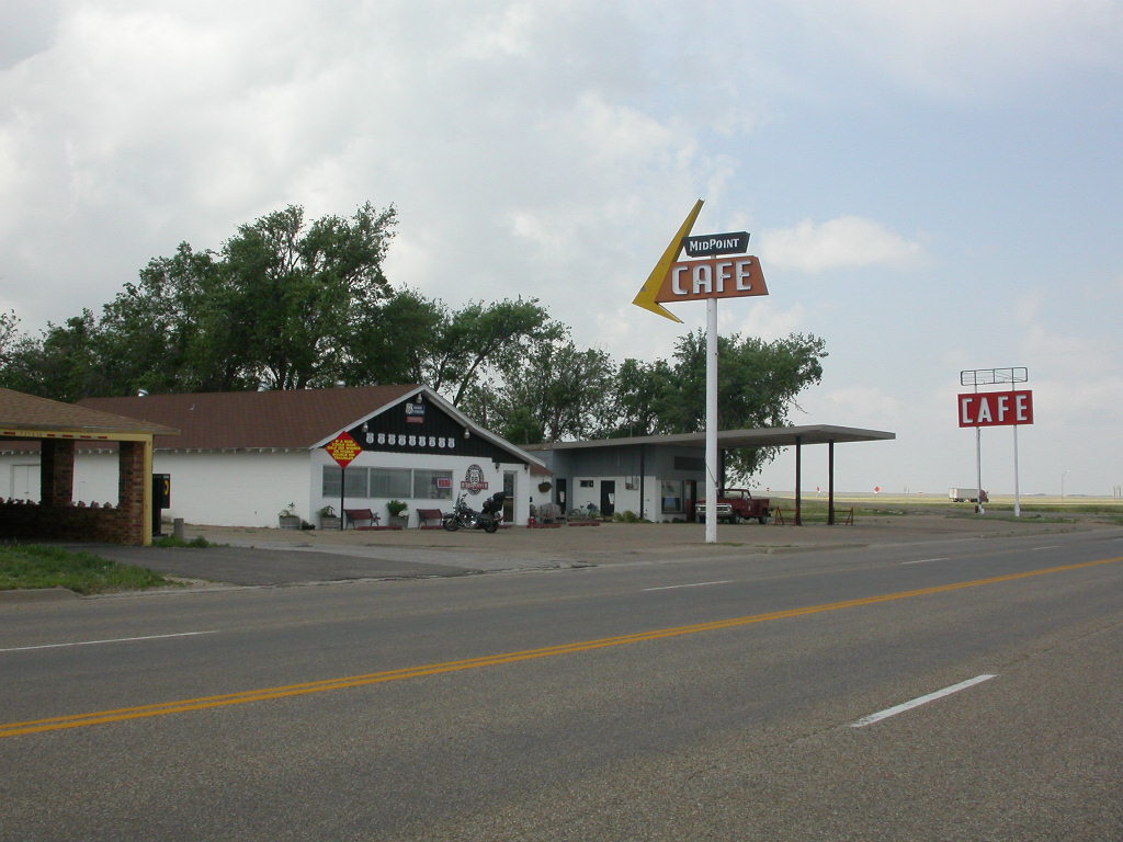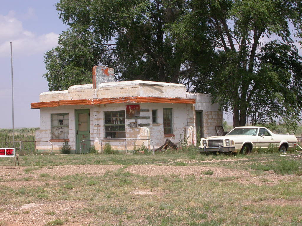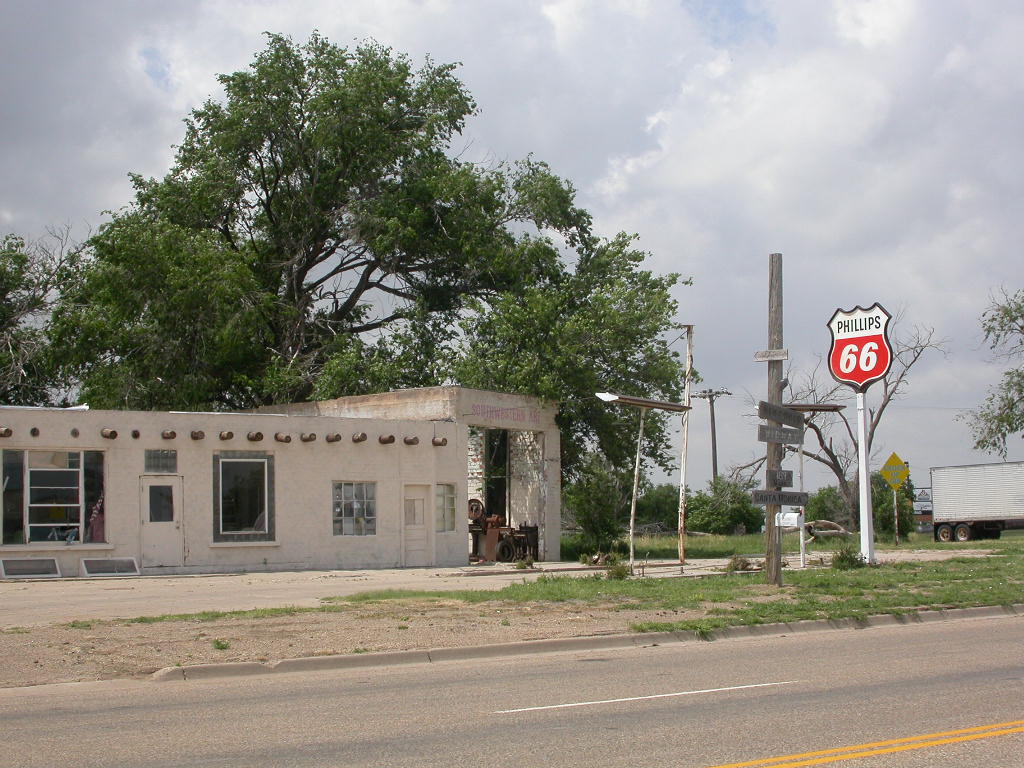 Adrian hat sich, ausser dem 'Midpoint Café', auch schon zu einer 'echten' Ghost Town entwickelt, ein verfallenes Haus nach dem andern. Hätte das Café nicht diese spezielle Lage, wäre hier wohl gar nichts mehr intakt wie kurze Zeit später in Glenrio an der Grenze zu New Mexiko.
