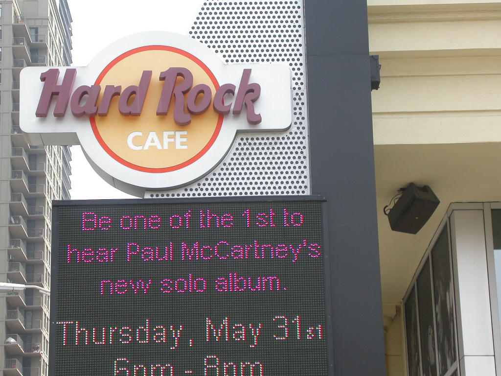 Nach diesen obligaten Fotos ging der Spaziergang weiter über den Chicago River zum Harley Dealer von Chicago. Da ich bereits ein T-Shirt von ihm in meiner Sammlung habe konnte ich hier etwas Geld sparen. Anschliessend gab es einen Chickensalat im Hard-Rock-Cafe. Schon bald musste ich dann zurück an den Flughafen fahren, um die Reiseteilnehmer in Empfang zu nehmen. Diese trafen mit zum Teil erheblicher Verspätung und leider einer auch ohne Koffer in O'Hare ein. Der Koffer wurde nach Ft. Meyers geschickt und wir dürfen ihn dann morgen hoffentlich in Empfang nehmen.
