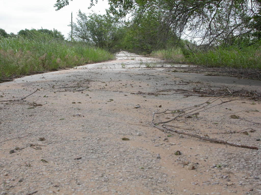 Zwischen Sayre und Erick heisst die Route 66 heute 'Roger Miller Memorial Highway' und die alte Originalstrecke zwischen dem heutigen Highway und der Bahnlinie ist schon sehr stark von der Natur zurückerobert.