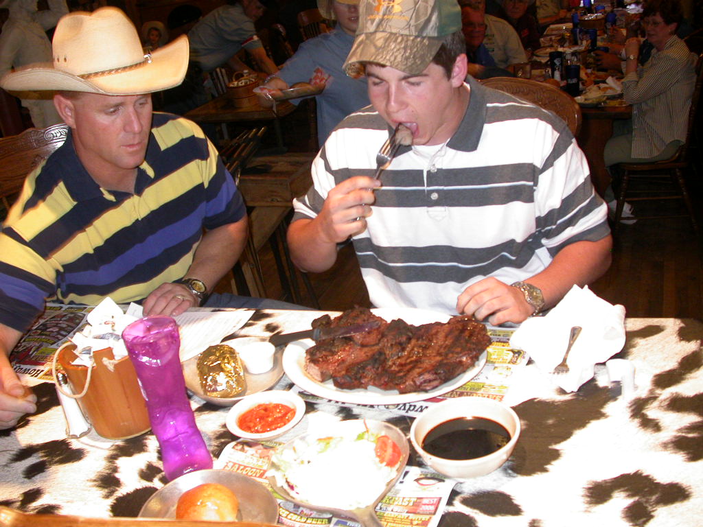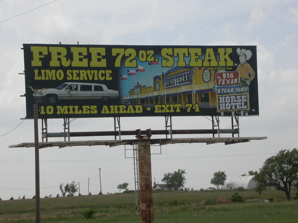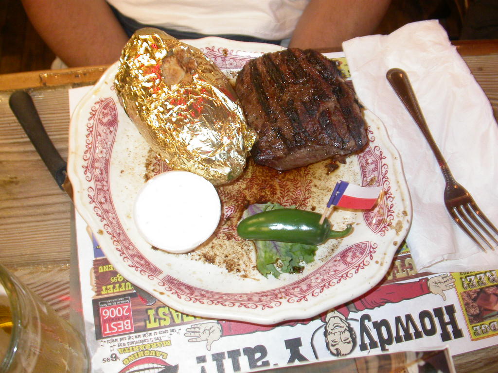 Quartier wurde heute auf der 'Big Texan Steak Ranch' bezogen und in diesem legendären Steakhouse stärkten wir uns dann auch entsprechend mit einem schönen Stück Fleisch. Auf das 72 Unzen (ca. 2 kg) Stück verzichteten wir wohlweisslich, aber so 16 Unzen hatten es auch schon in sich.