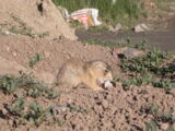 Mitten in Gallup direkt neben der Strasse getraute sich ein junges Streifenhörnchen aus seinem Bau und lies sich durch den nahen Verkehr überhaupt nicht beim Fressen stören.