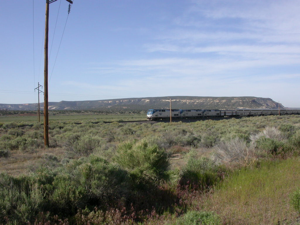 Obwohl die Route 66 grösstenteils parallel zur Eisenbahn führt sehen wir heute zum ersten mal auch Züge, die diese Linie noch befahren. Neben den schweren und bis zu 150 Wagen langen Güterzügen, verkehren auch Personenschnellzüge.