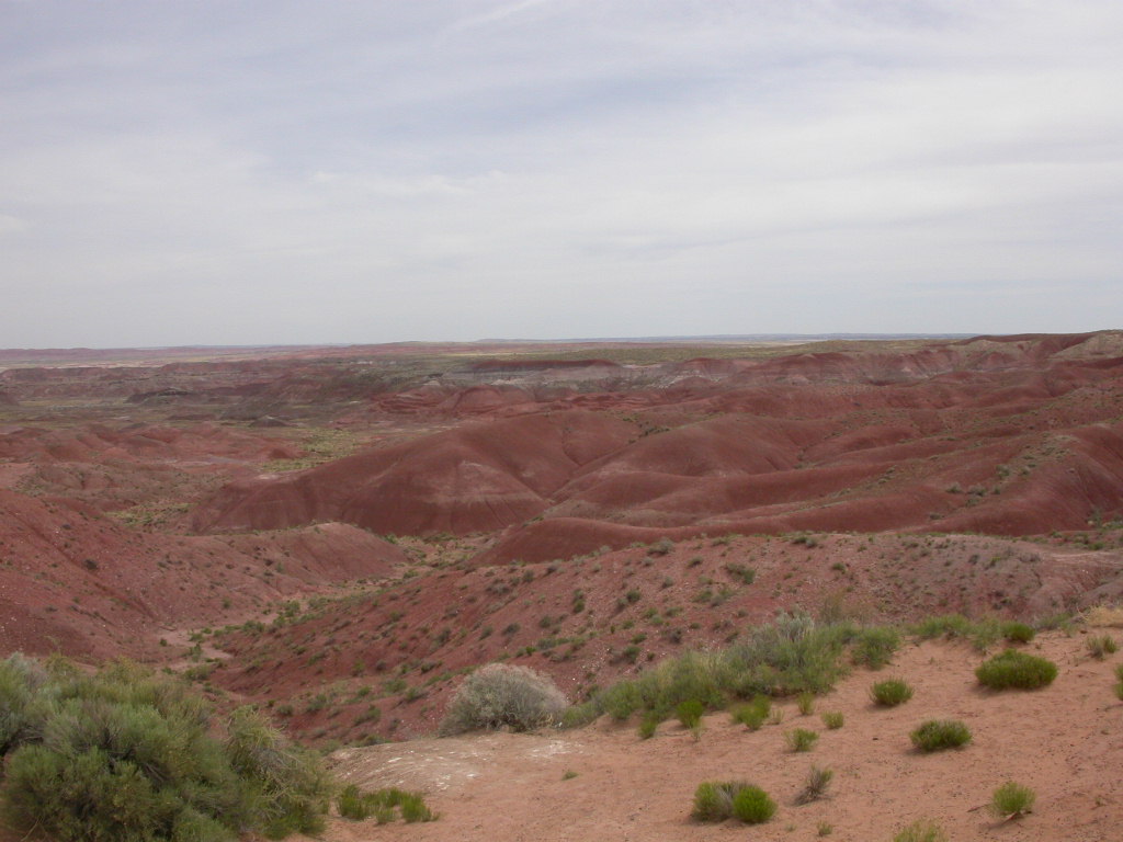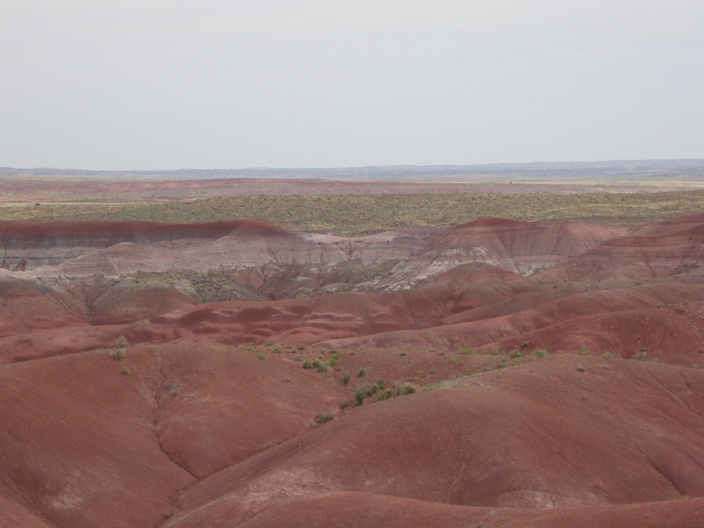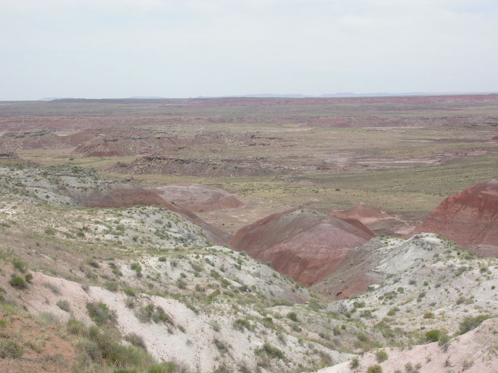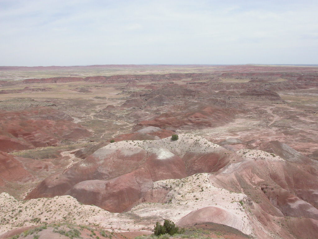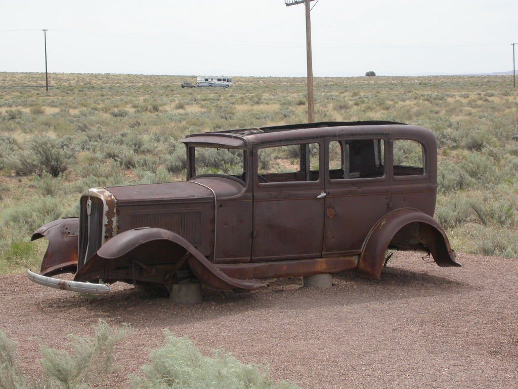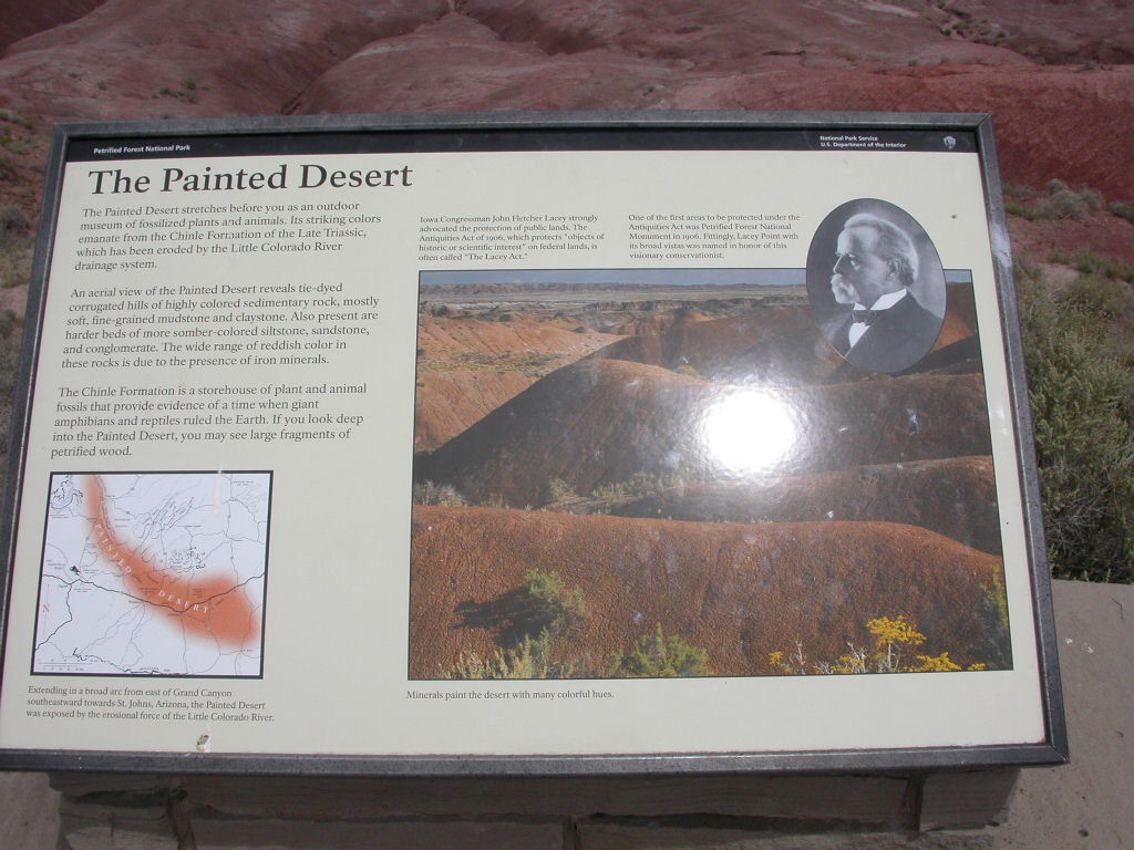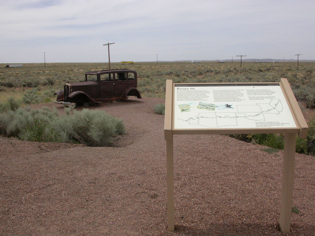 Ein erster Nationalpark Höhepunkt dieser Reise ist die Fahrt entlang der 'Painted Dessert' und durch den 'Petrified Forest'. Es ist schon erstaunlich, was hier in der flachen Prärie plötzlich für Zeitzeugen der Erdentwicklung zum Vorschein treten. Sogar ein kleines Mahnmal für die 'Mother-Road' ist auf der Strecke vorhanden.