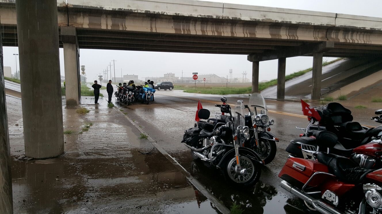 Leider hat sich der gestrige Regen noch verstärkt und es schüttete runter was es konnte. Bei diesem Wetter suchte die Gruppe lieber Schutz unter einer Autobahnbrücke anstatt durch den Sumpf zur Cadillac Ranch zu waten.