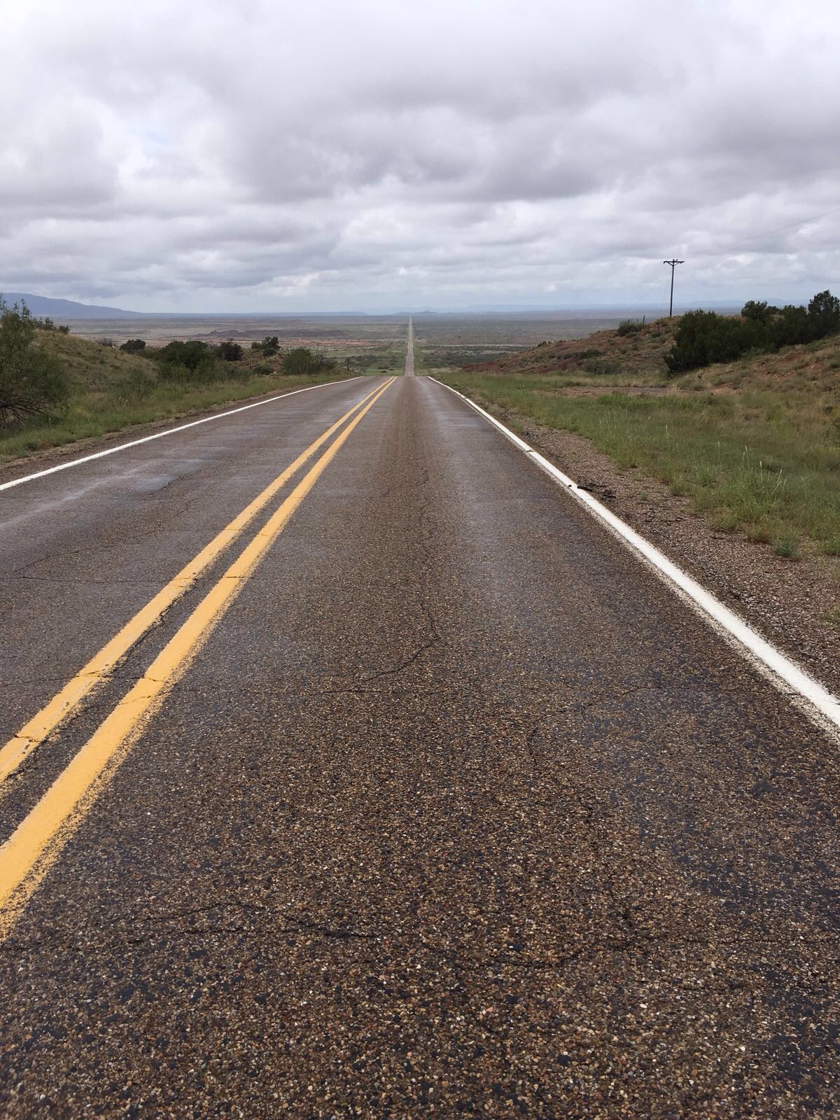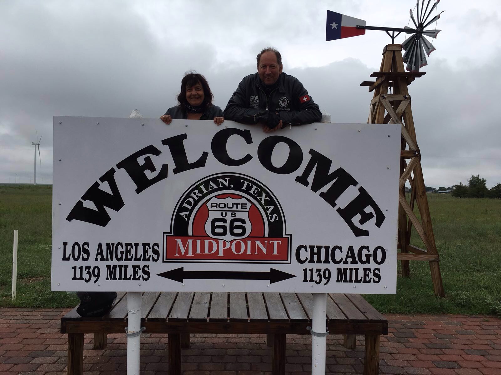 Bei der Vorbereitung habe ich gesehen, dass das Midpoint-Cafe heute geschlossen ist und wir dort keine der weltbesten 'Cimarron-Roles' bekämen. So ging ich schon in Amarillo welche kaufen, halt nur die 'zweitbesten' aber auch die schmeckten sehr gut. Bei der Kälte und Nässe hätte wohl ein heisser Kaffee gut getan, aber der war auf die Schnelle nicht zu organisieren. Noch die obligaten Fotos des Midpoints geschossen und weiter ging die Fahrt nach Tucumcari.