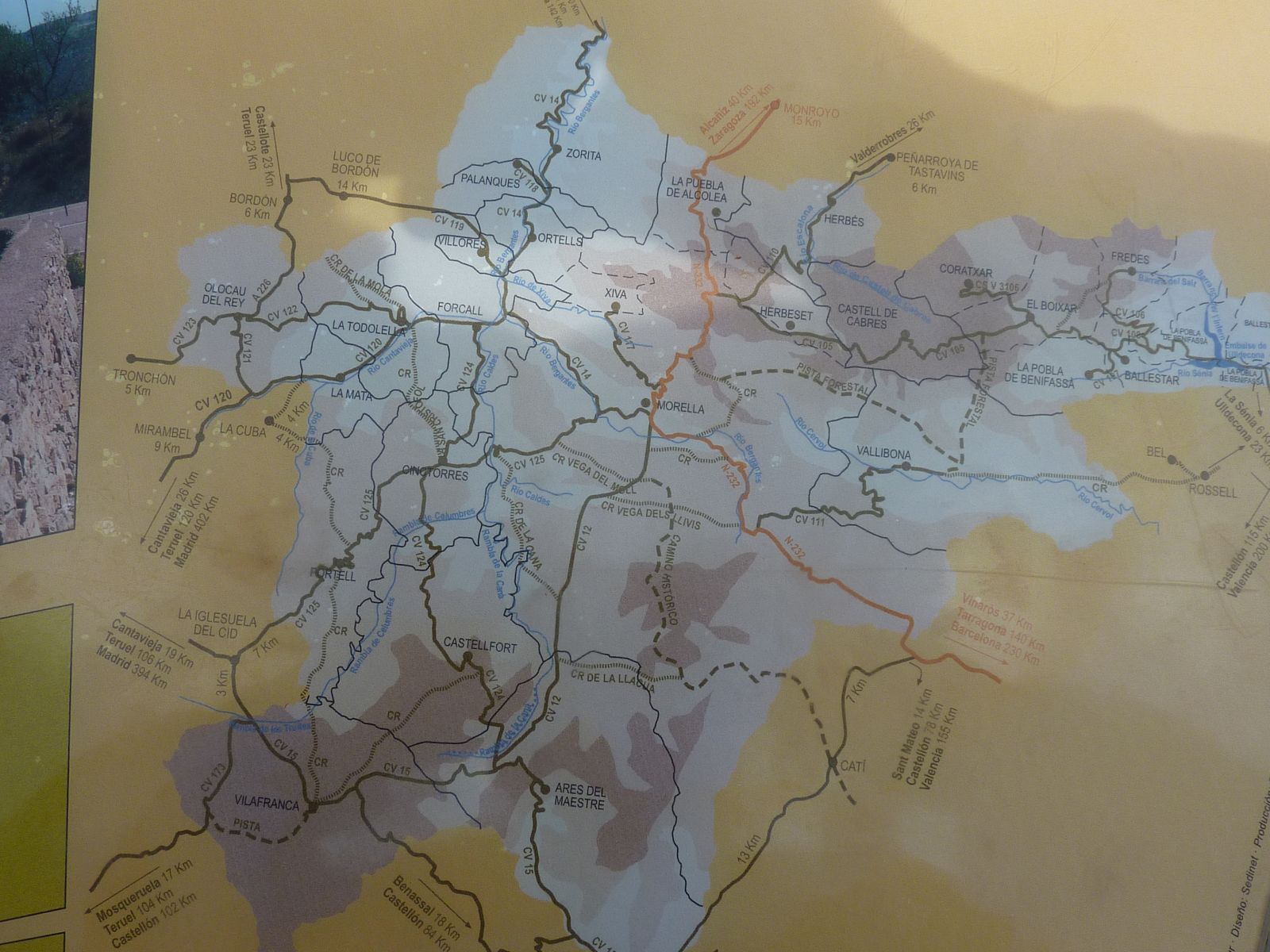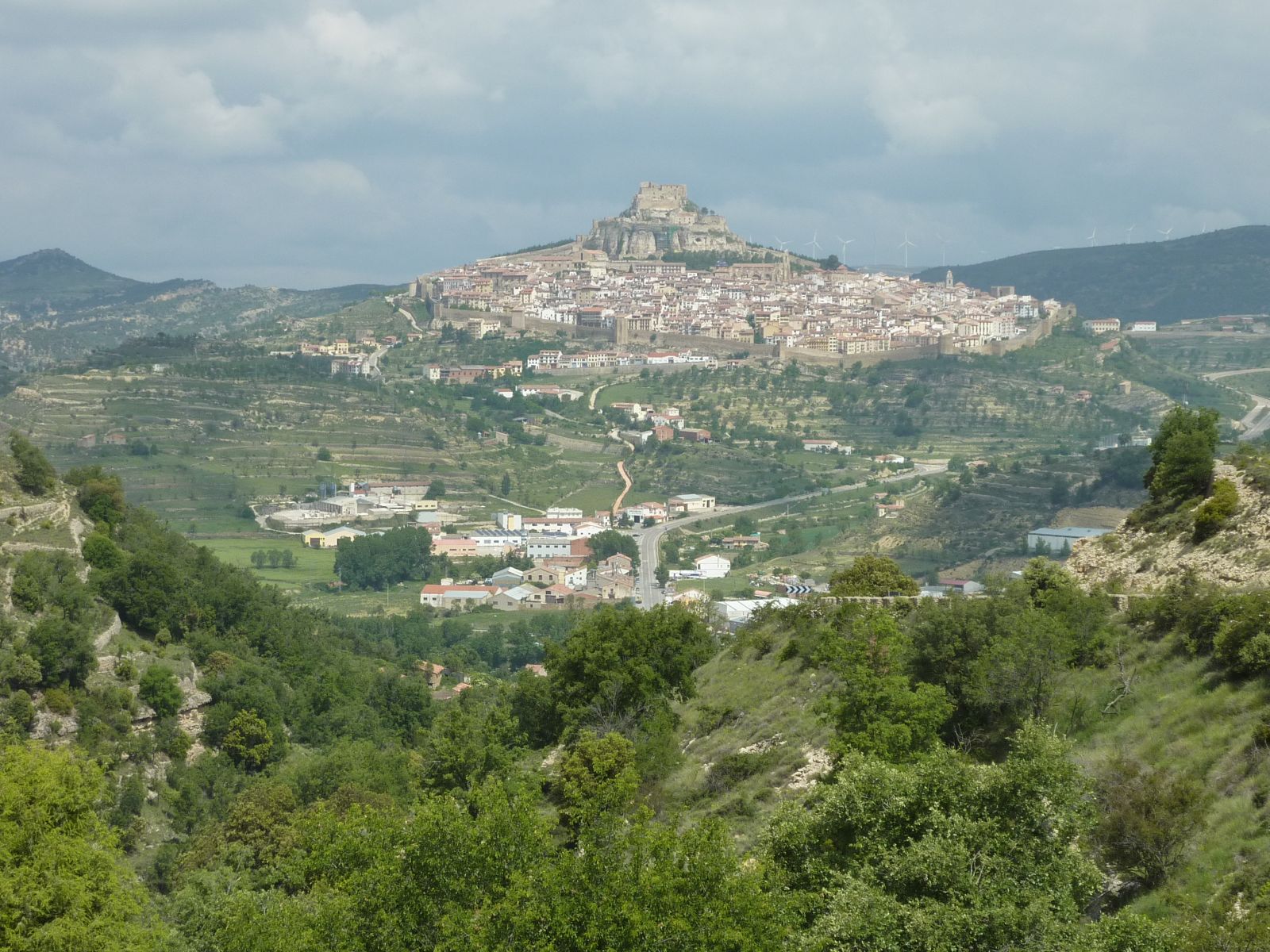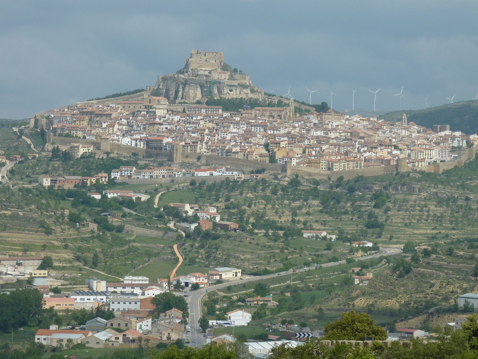 Danach ging es weiter in die Berge von 'El Maestrat'. Plötzlich tauchte der Burghügel von  Morella auf. Bei einem Aussichtspunkt wurden erste Fotos von diesem markanten Hügel mit seiner kompakt bebauten Stadt und der sehr gut erhaltenen Stadtmauer geschossen. Wir beschlossen dort für eine Besichtigung inkl. Mittagsrast anzuhalten.