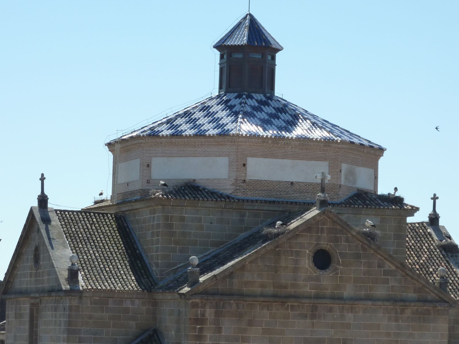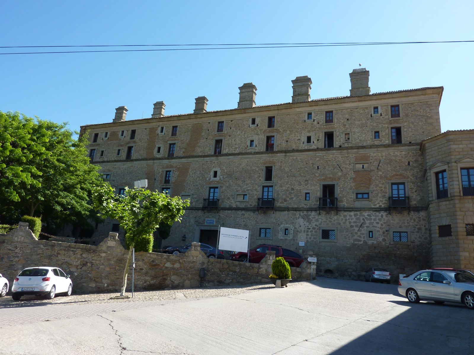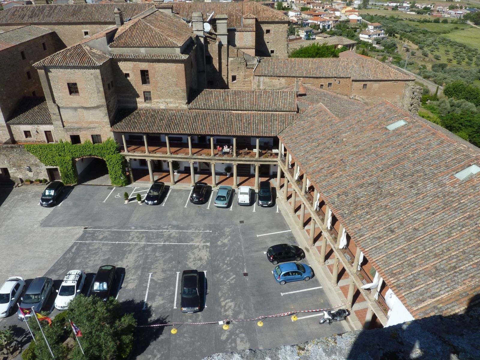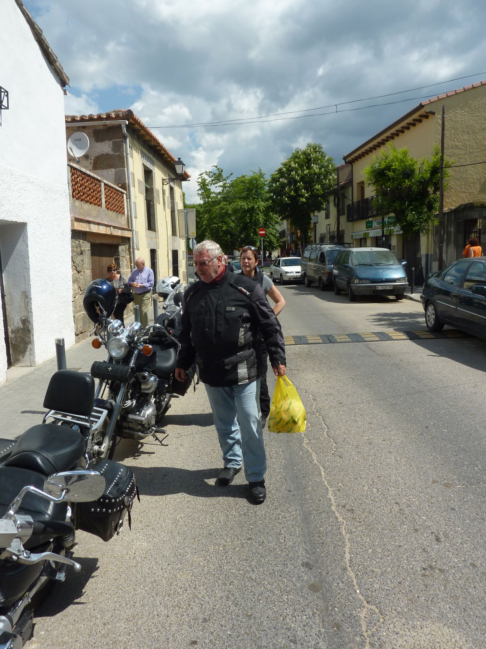 Ich studierte also das Navi und die Karten und sah, dass die Naturstrasse ca. zwei Kilometer weiter auf eine normale Strasse traf. Ich erklärte Stefan wo er durchfahren musste und wir uns dann wieder treffen sollten. Er fuhr also zurück und Albert und ich weiter, bis zu der abgemachten Kreuzung. Hier warteten wir recht lange und niemand kam. So entschlossen wir uns zurückzufahren : Albert die Naturstrasse und ich die Strasse auf welche die Andern zu uns kommen sollten. Den Albert traf ich dann wieder da wo das 'Bachbett' begann aber von den Andern war nichts zu sehen. Also zurück bis zum Spielplatz, aber auch da nichts. Wir fuhren dann wieder zum abgemachten Treffpunkt, da erhielt Albert von Edith ein SMS, welche besagte dass sie auf einer andern Route nach Oropesa fuhren. Also fuhren wir zu zweit südwärts durch die Ausläufer der Sierra de Gredos auf die Autobahn nach Oropesa wo wir doch trocken ankamen und uns der  Parador von Oropesa für die nächsten zwei Nächte als Gäste erwartete.