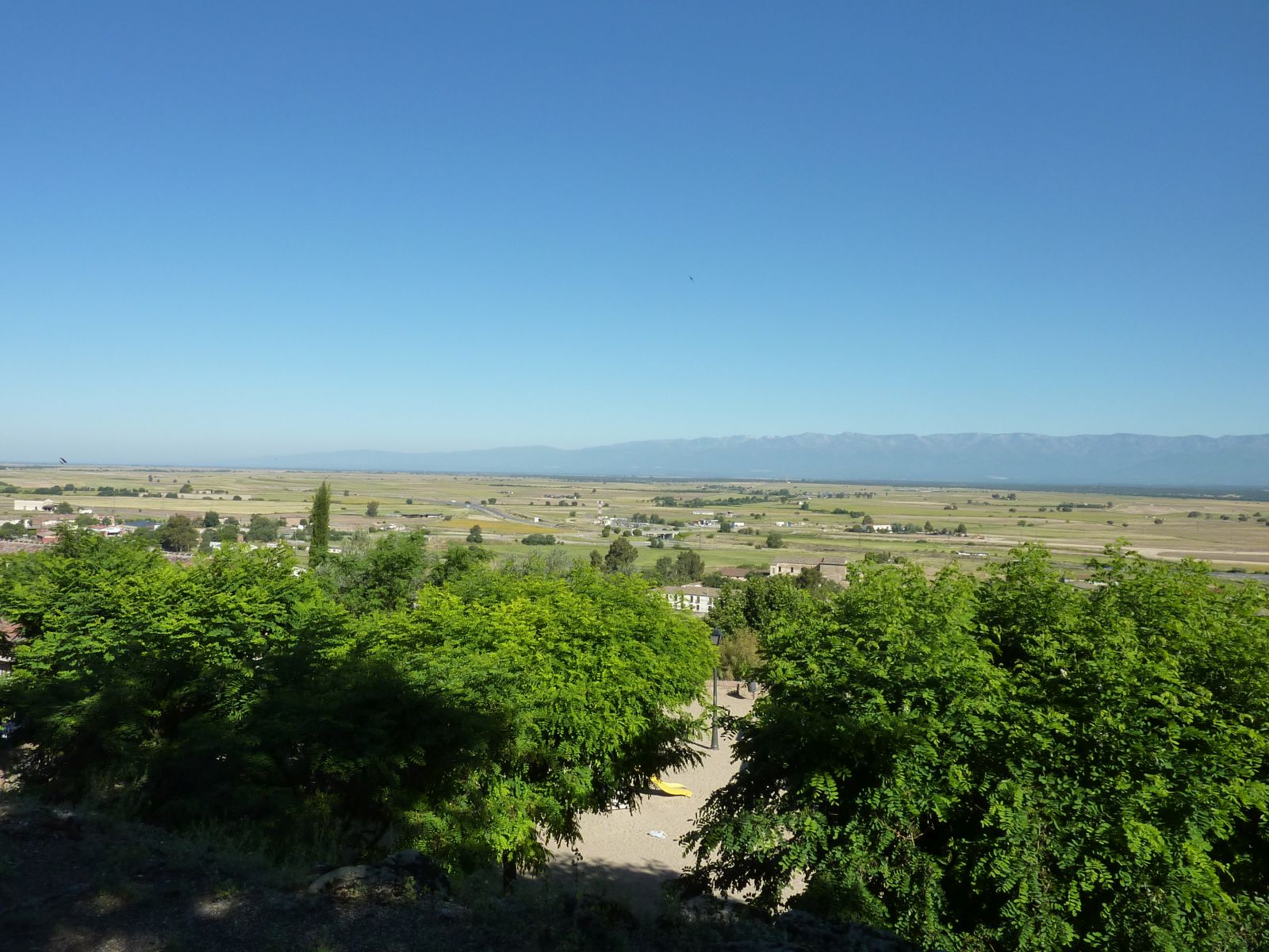 Am Embalsa de San Juan wollte ich eigentlich unseren Mittagsrast machen, doch ausser einer Staumauer war nicht viel zu sehen und wir fuhren weiter Richtung Sierra de Gredos. Auf dem Weg die Sierra von der Nordseite her zu befahren begann es leicht zu regnen und als wir etwas weiter sehen konnten waren die Berge total voller schwarzer Wolken. Zum Glück hatte es da bald einen Kreisverkehr, so dass wir 360 Grad wenden konnten und zurück nach San Martin fuhren. Wir blieben also auf der Südseite der Sierra wo das Wetter noch trocken aussah und nahmen dann unser Mittagessen auf einem Spielplatz mit Tisch und Bänken ein.