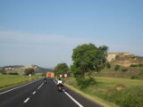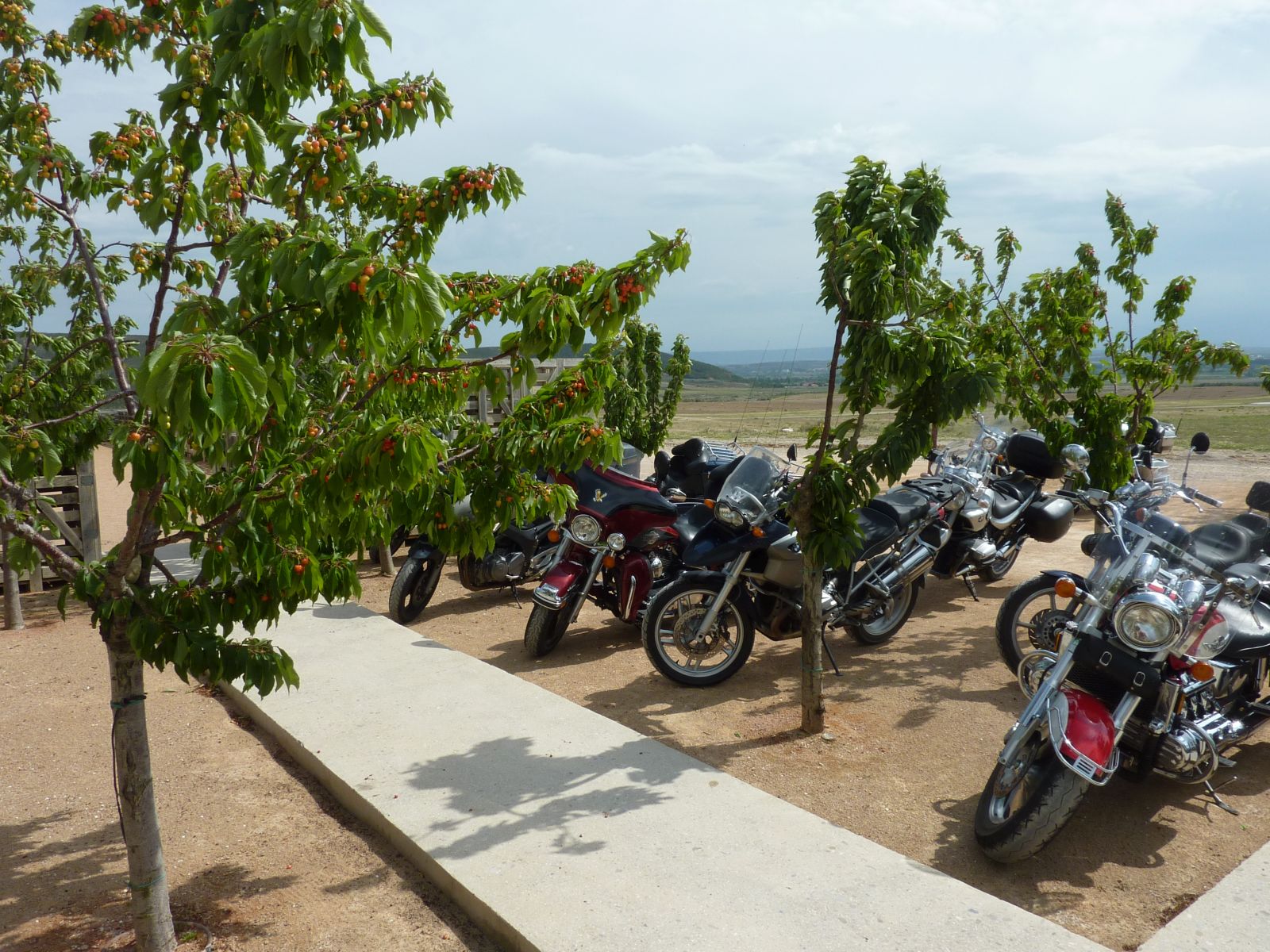 So stellten wir unsere Maschinen am Strassenrand ab, genossen die Aussicht und unser Essen. Edith wurde langsam nervös, denn die Tankanzeige an ihrem Töff zeigte bedenklich gegen null und von einer Tankstelle war weit und breit nichts in Sicht. Wir fuhren also weiter bis Ejea de los Caballeros und auch Edith kam mit dem letzten Tropfen da an der Tanke an. Nachdem wir unsere Bikes frisch getränkt hatten gönnten wir uns auch noch was, bevor wir bei Tudela unser heutiges Hotel 'Aire de Bardena' erreichten.