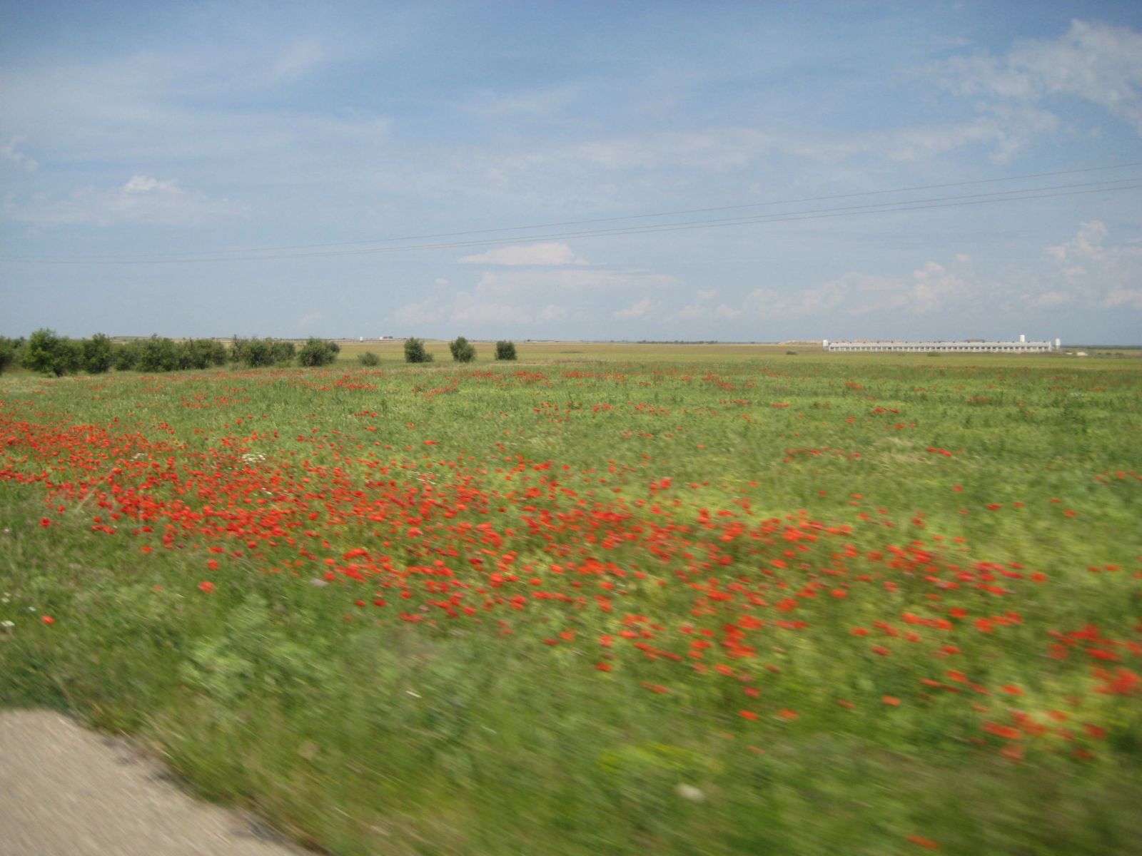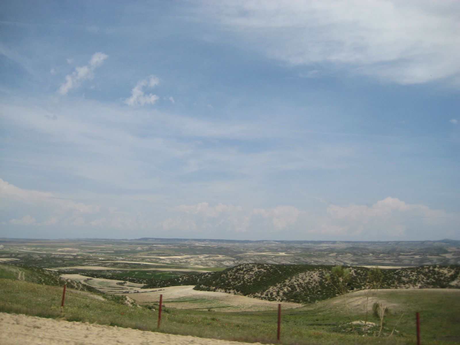 Es war gerade um 9 Uhr als ich einen Carrefour erblickte und ich dachte beim heutigen schönen warmen Wetter können wir zum Mittag Picknicken. So hielten wir da an und stellten fest, dass dieser erst um 9:30 öffnet. Zum Glück hatte das Kaffee aber schon offen, so dass wir gemütlich einen Kaffe oder einen zumo de naranja trinken konnten. Schon bald konnten wir unser Mittagessen einkaufen und die fahrt fortsetzen. Durch die Ebenen zwischen Lleida und Zaragossa hatte es doch richtige 'Rumpelpisten' auf welchen das Fahren keine Freude machte, doch schon bald besserten sich die Strassen und die Landschaft hatte doch sehr viel zu bieten. Am Strassenrand wuchs der wilde Mohn in saftigem rot und die Olivenbäume schimmerten silbern.