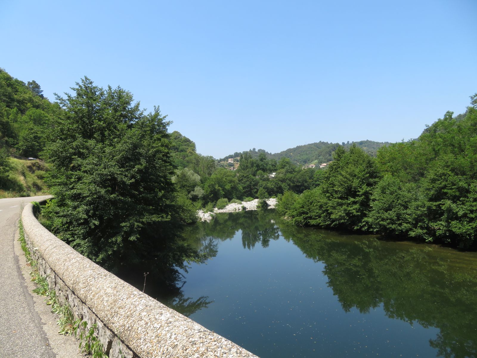 So fuhr ich erstmal westwärts in die Hügel und Pässe der Ardeche hinein und fand da schöne einsame kurvige Strassen. Doch es wurde immer heisser und heisser, so dass ich mich bei Aubenas entschied auf eine witere Runde über noch 6 Pässe zu verzichten und direkt in Hotel Belvedere in der Ardechschlucht fuhr.