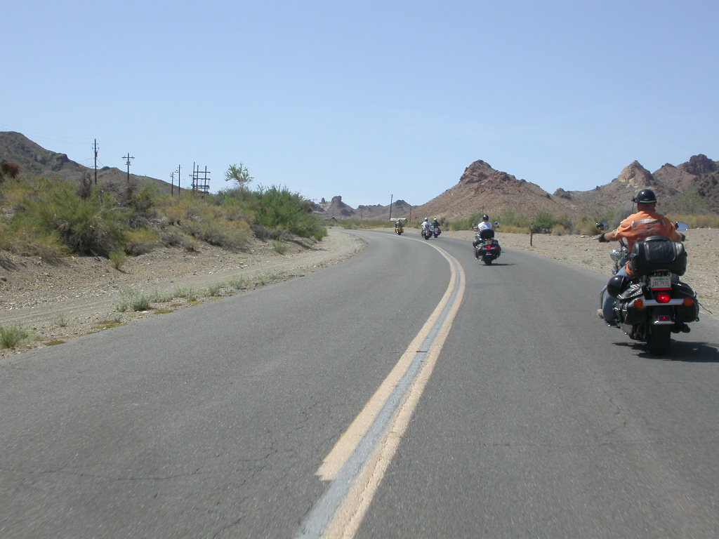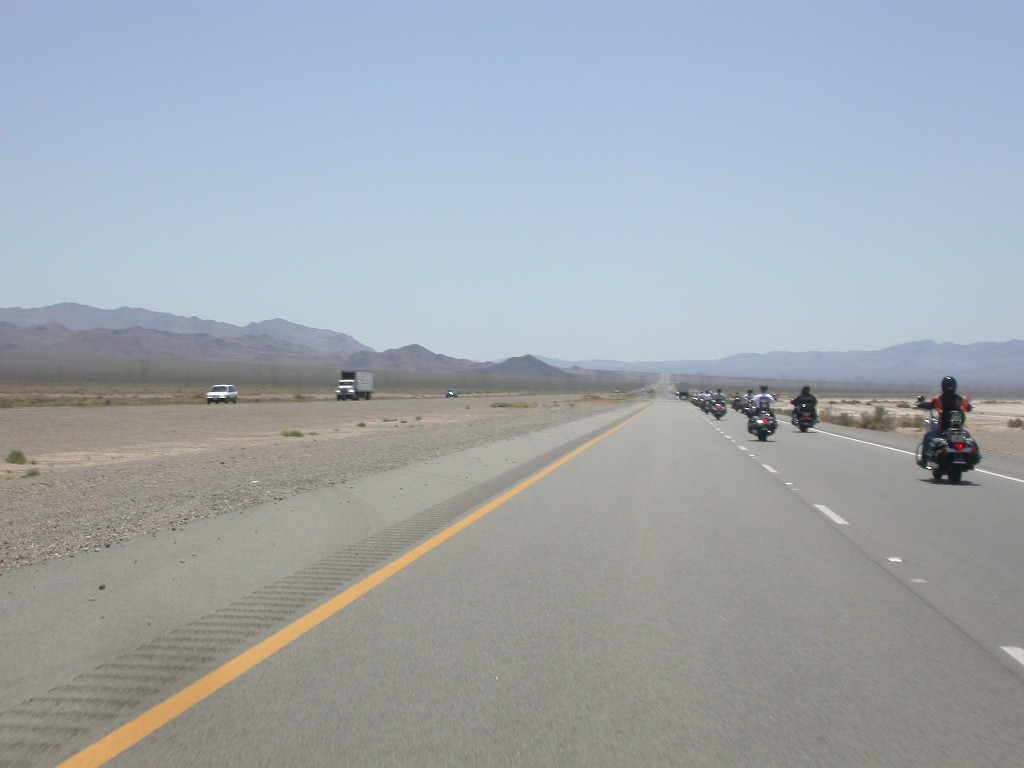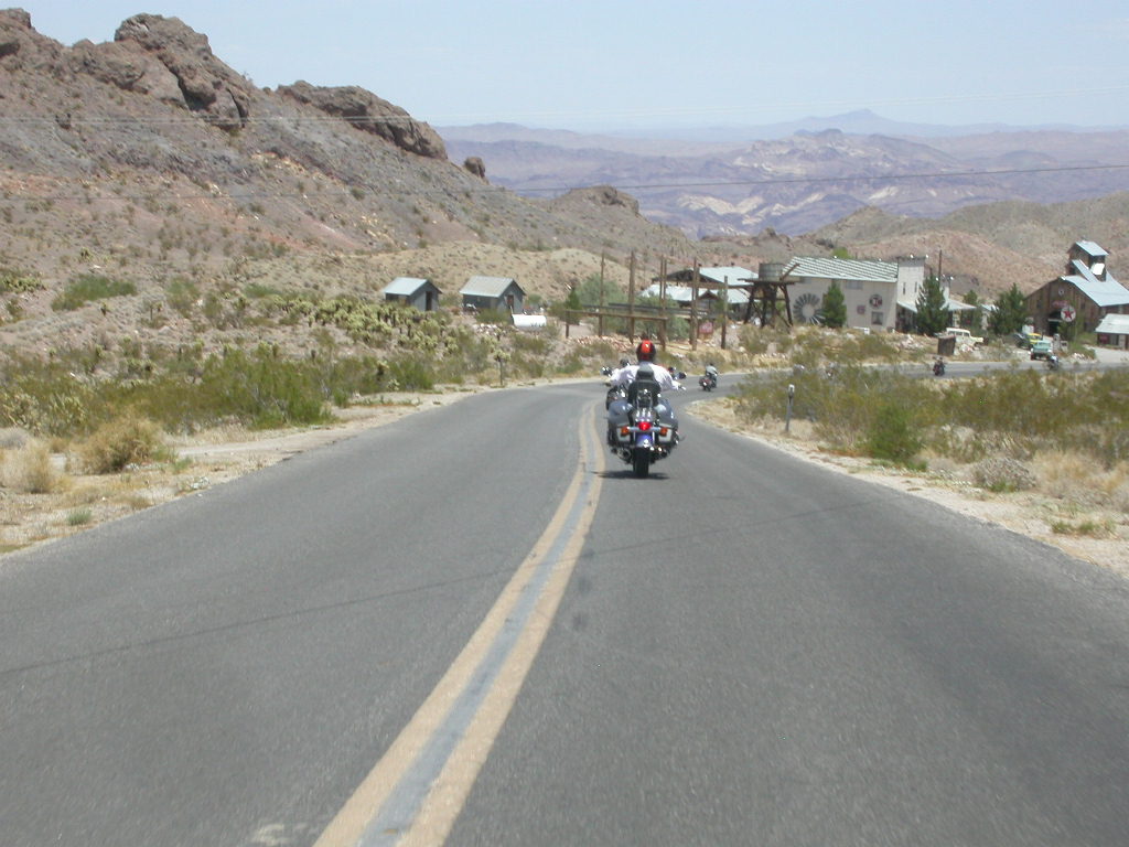 Nach der erneuten Rückfahrt durch den 'El Dorado Canyon' stillten wir unseren Durst in der angehenden 'Ghost Town', der verlassenen Mine mit noch verweisterer Tankstelle aber noch funktionierendem Saloon. Weiter ging die meilenweite Fahrt 'stright ahead' bei brütender Hitze durch das Colorado Valley Richtung der Gambling Town Laughlin am Colorado River. Laughlin ist sicherlich vielen Bikern auch durch die alljährliche River Run Bike Week bekannt.