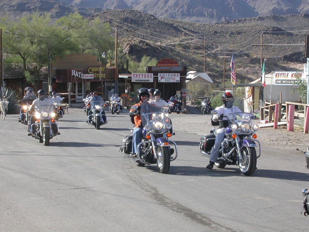Nach dem einem kurzen Stopp beim lokalen Harley-Dealer wurde das längste noch zusammengehörende Stück der 'Mother-Road' von Kingman nach Seligman in freier Fahrt unter die Räder genommen. Dieses freie Fahren artete aber eher zum freien Jagen im Harley-unüblichen Tiefflugtempo aus und die Zeitzeugen der Route 66, welche zu einem kurzen Stopp einladen, wurden regelrecht links und rechts liegen gelassen.