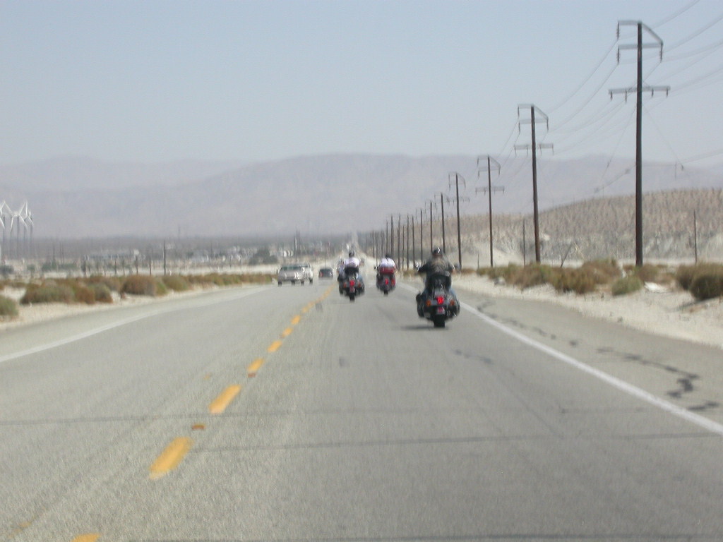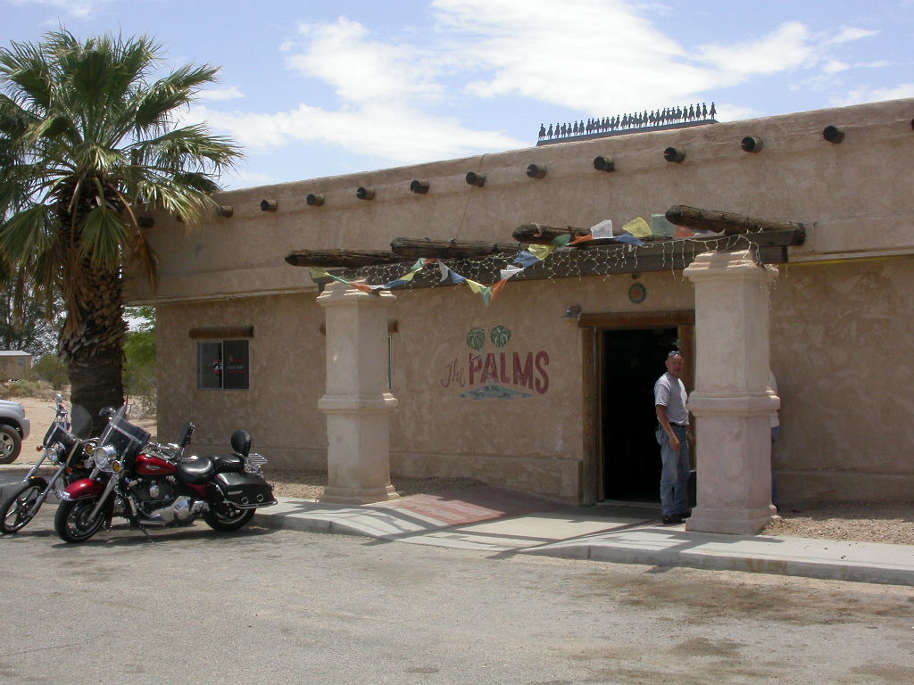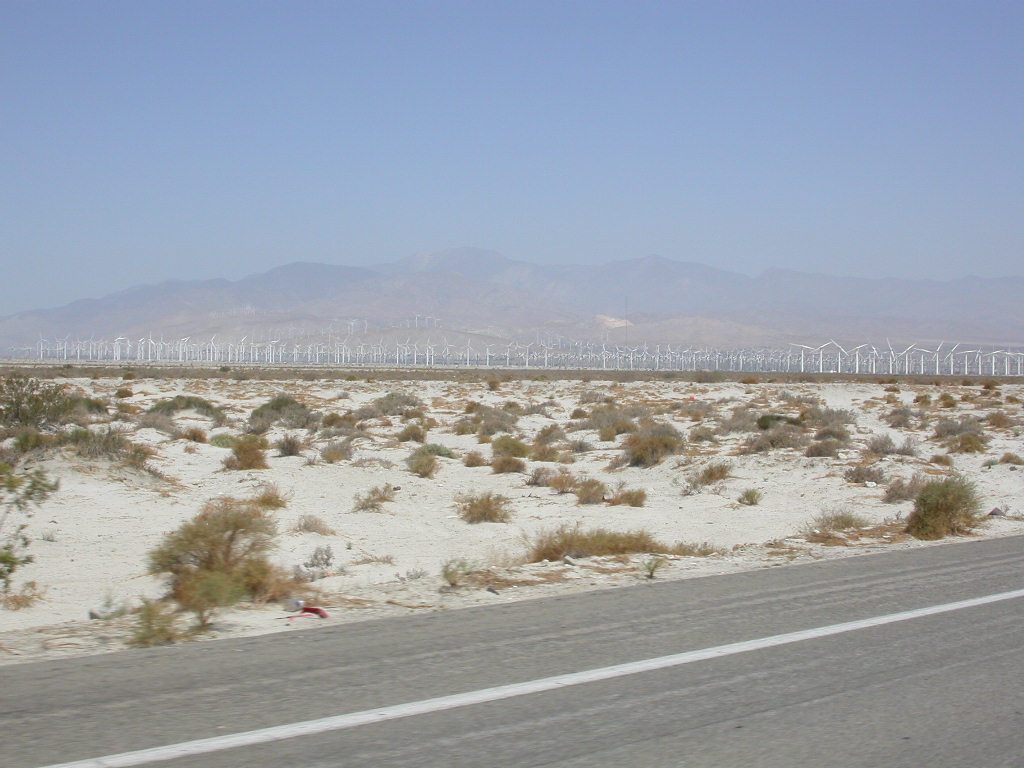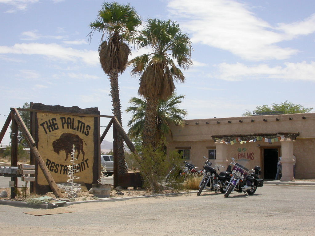 Nach dem Frühstück am Swimmingpool durchquerten wir das Tal von Palm Springs. Es ist hier nicht nur heiss, sondern auch sehr windig. Die Felder von Windpropellern zeugen davon und werden zur Energieerstellung benutzt. Entlang des Joshua Tree National Park errteichten wir Twenty-Nine Palms und kurz danach die Wüstenkneippe 'The Palms' oder 'Wild Elephant'.