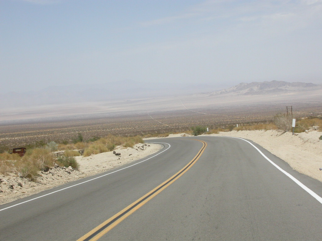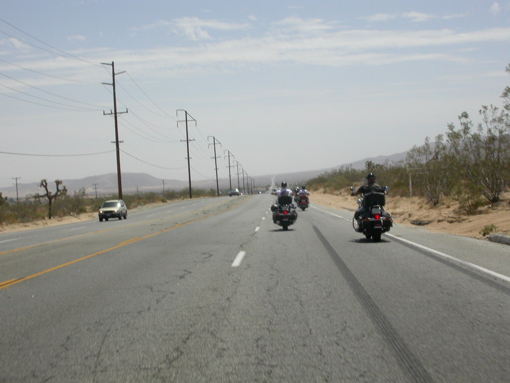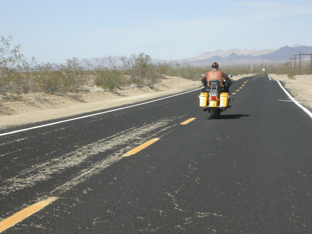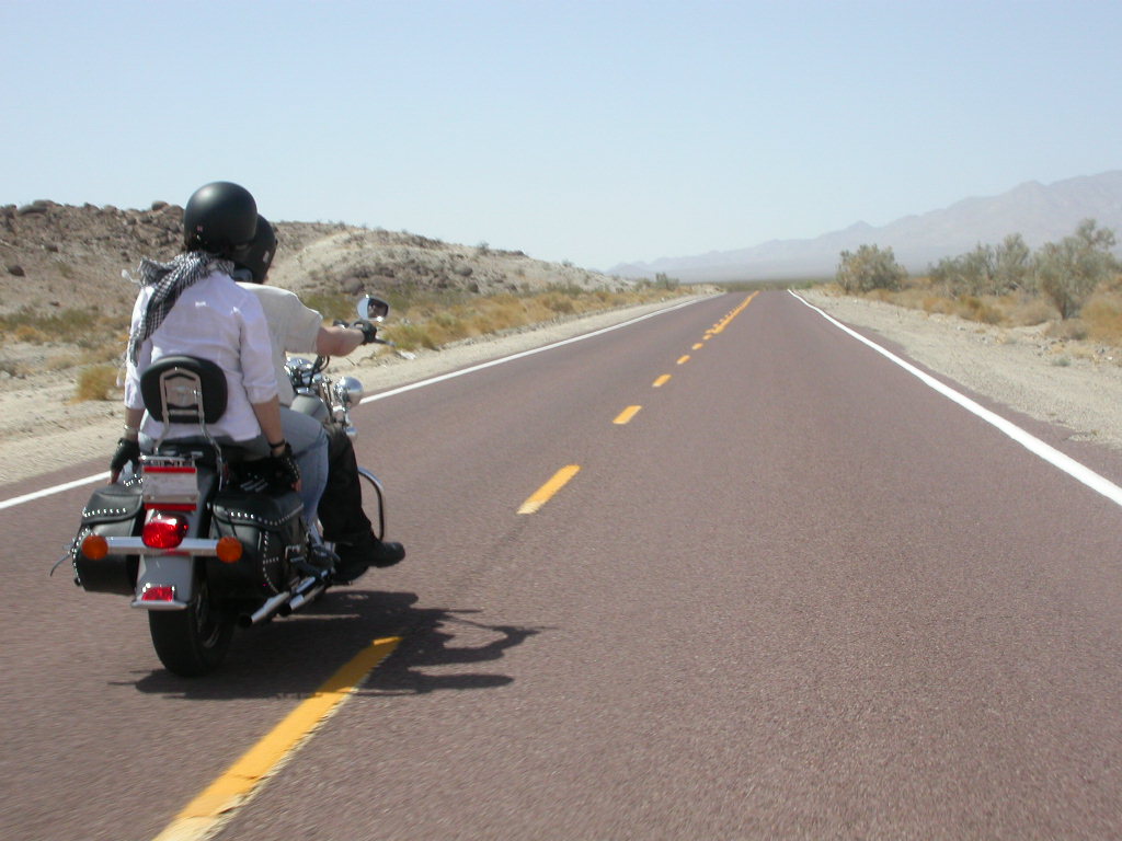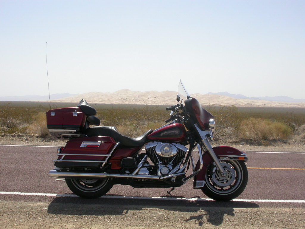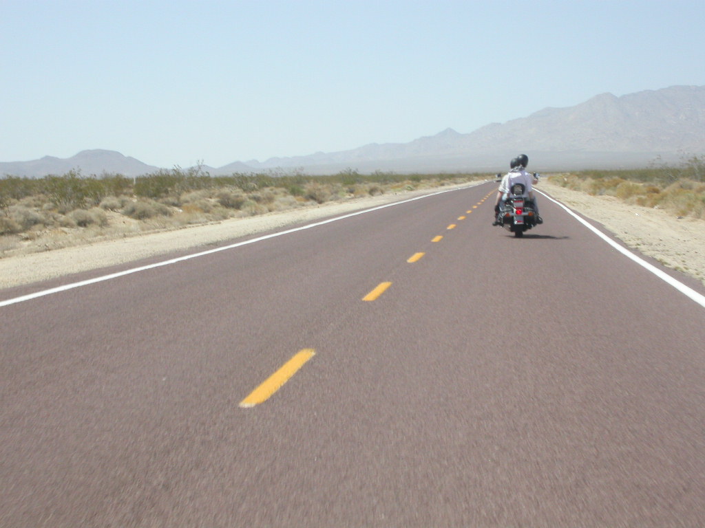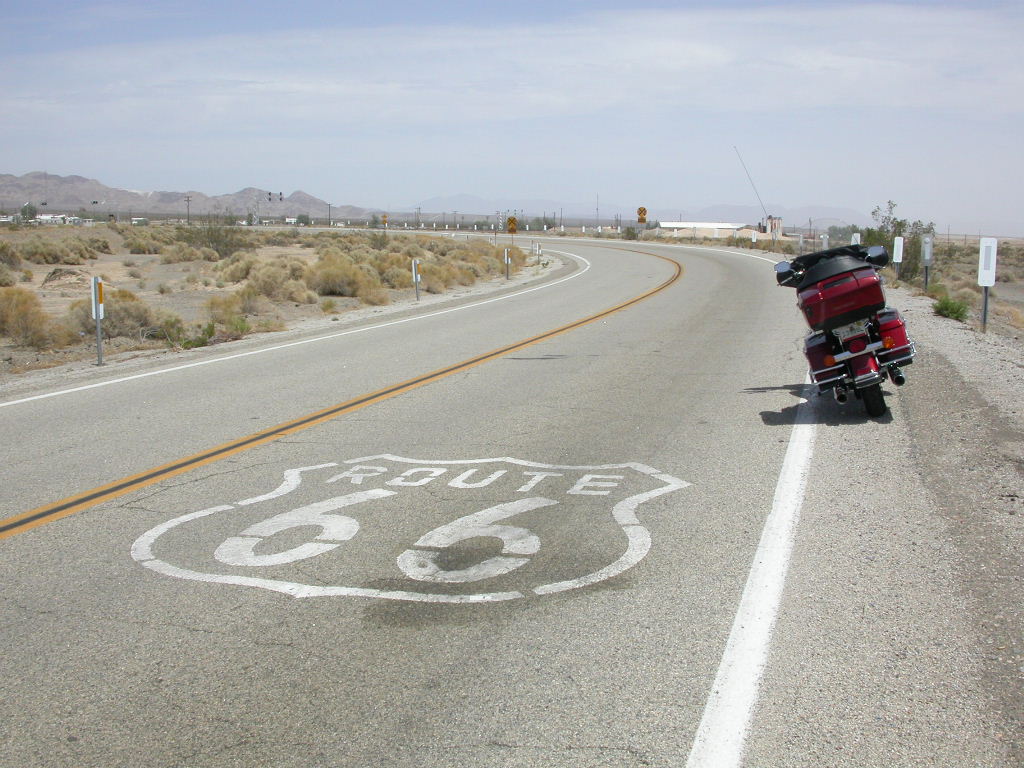 Nach der gestrigen 'Kurvenorgie' holte uns heute die andere Seite des Bikens in den USA ein : Meilenweit 'stright ahead' und der 'Harley-Tempomat' wurde rege benutzt. 40 Minuten nach dem Essen erreichten wir den Old National Trial Highway, die alte Streckenführung der Route 66, der durch den Amboy Crater und dem ausgetrockneten Bristol Salzsee führt. Roys Cafe an der Route 66, den meisten wohl durch zahlreiche Filme und Videos bekannt. (Enrique Iglesias „HERO“), war der nächste Erfrischungsstopp, bevor es über Devils Playground (des Teufels Spielplatz),  vorbei an den Kelso-Dünen weiter quer durch die Mojave Wüste ging!