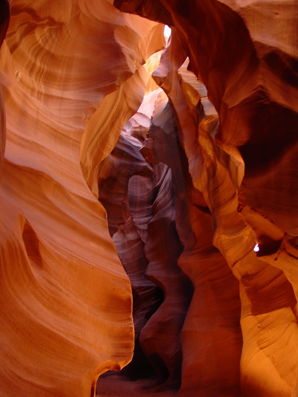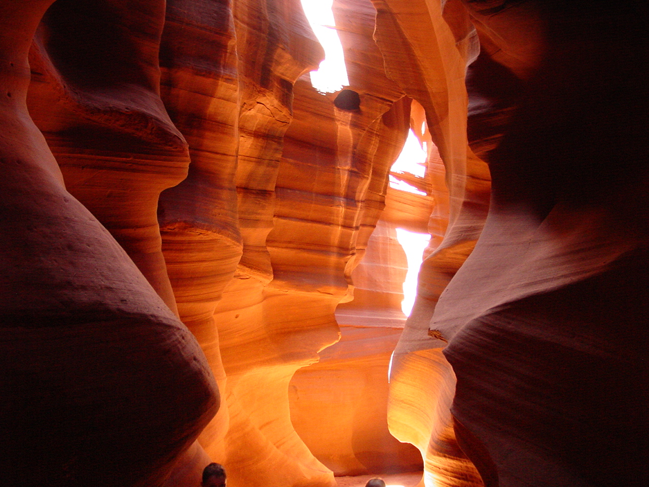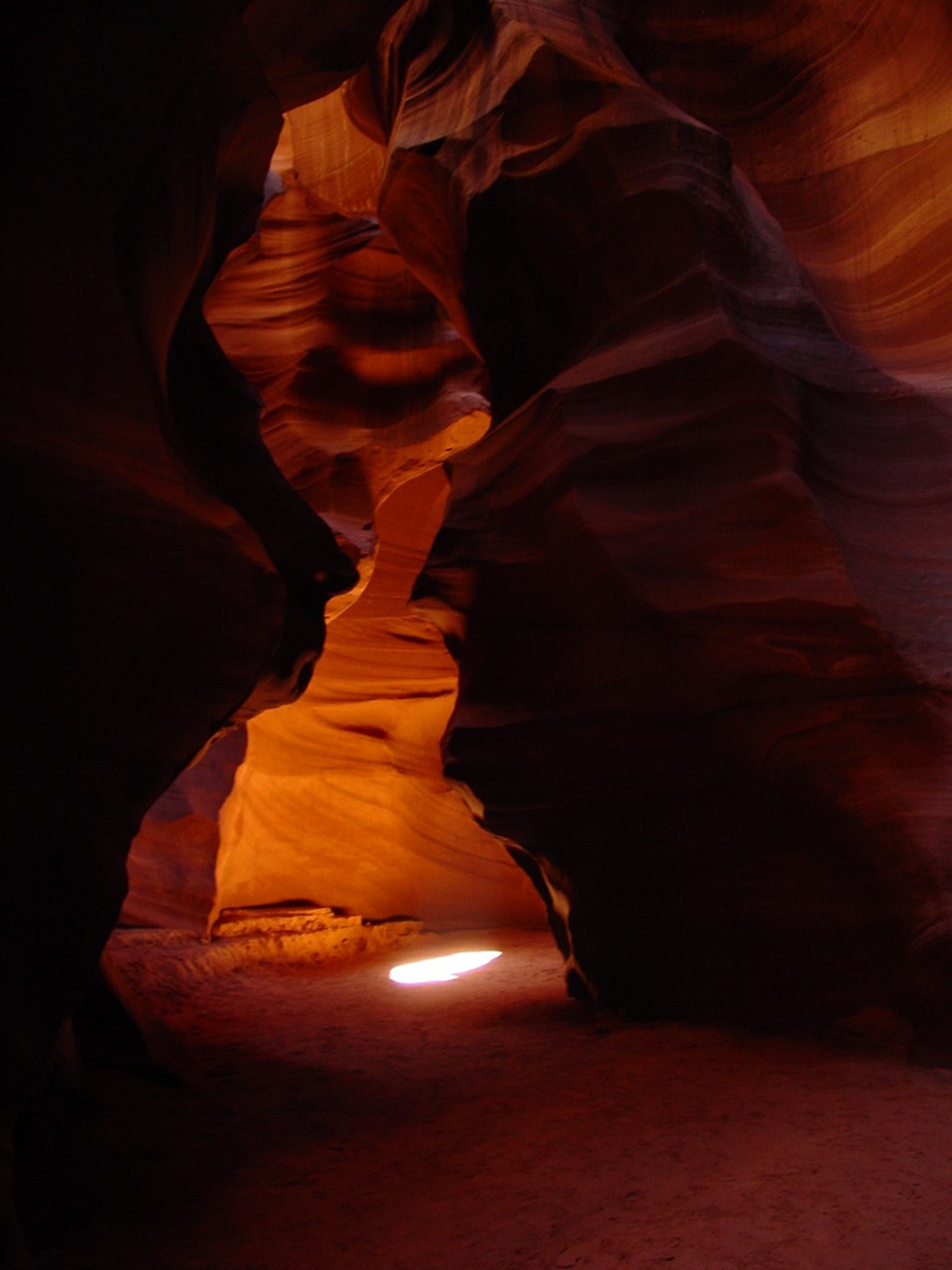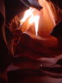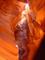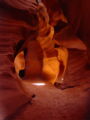 Vor der Weiterfahrt nach Flagstaff, wo wir wieder auf die 'Old Route 66' treffen sollten, besuchten wir noch eine weitere Sehenswürdigkeit der Navajo Indianer, den Antelope Canyon. Diese schmale Schlucht bietet je nach Tageszeit und Sonneneinfall ein Farbenspiel sondergleichen an den Felswänden. Der Canyon ist heute noch im Besitz der Indianer und ein indianisches Kulturgut, dass ihnen nicht von den 'Weissen' gestohlen wurde. Er wurde vor Jahren von einem indianischen Hirtenmädchen entdeckt und dient  heute als touristische Einnahmequelle. Die Besichtigung wird zu Fuss gemacht und durch den Canyon hindurch ist es meistens nur gerade Schulterbreit.