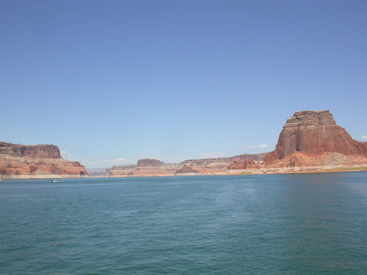 Am nächsten Tag war der erste richtige Ruhetag angesagt. Wir machten einen Ausflug, für einmal ohne die Harleys mit dem Boot über den Lake Powell zur Rainbow Bridge. Dieser Felsbogen ist der grösste seiner Art und ist ein Heiligtum der Navajo Indianer. Auf der Hinfahrt verging die Zeit recht schnell, denn im gefluteten Glenn Canyon gab es doch eindrückliche Felsformationen zu Bestaunen. Nach der Wanderung zur Rainbow Bridge und zurück war dann die Rückfahrt auf dem See doch recht anstrengend und es schien eine Ewigkeit zu dauern, bis wir wieder in Page waren.