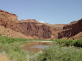 Nach Moab führte eine der schönsten, mir bekannten Routen (UT 128), durch rote Felsen und entlang eines malerischen Flusses, dem Little Colorado River. Diesem sollten wir auf unserer Reise noch mehrmals begegnen.