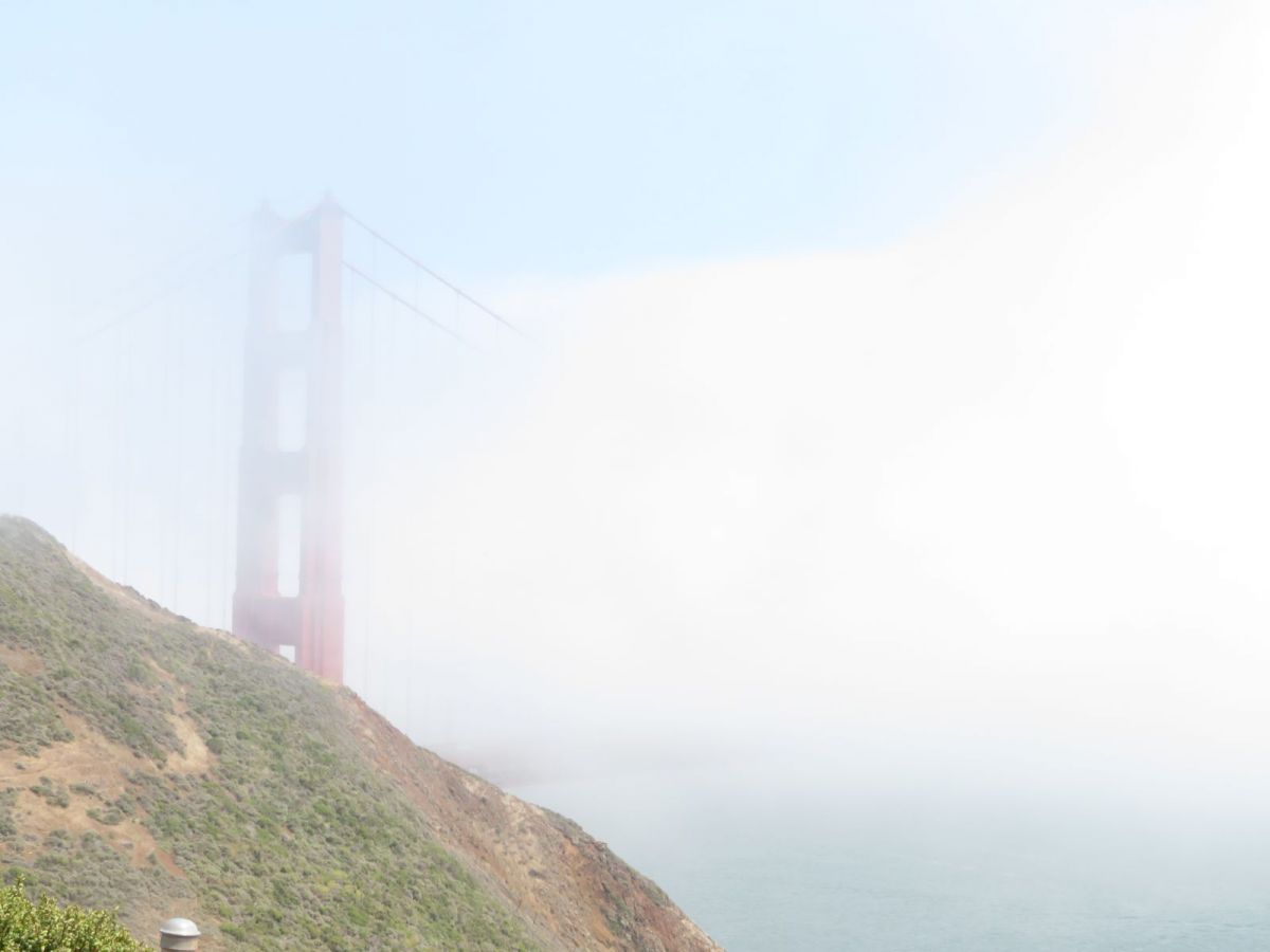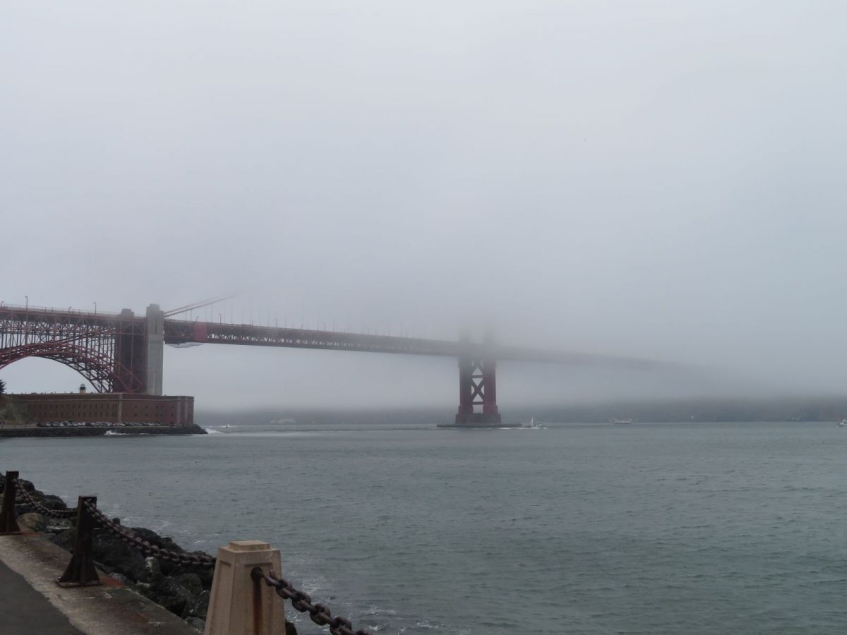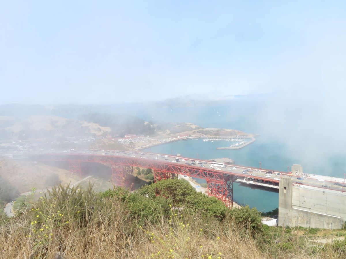 Doch bevor wir über die Golden Gate Bridge unser Tagesziel erreichen, fahren wir noch zu einem Aussichtsplatz von wo wir hoffentlich die nebelfreie Brücke fotografieren können.