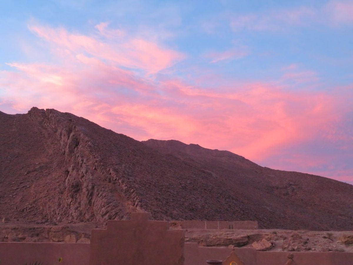 Nach einem kühlen Happy Landing kühlten wir uns auch noch im schönen Swimmingpool ab. Mangels Alternativen blieben wir im Kasbah und assen da bei herrlichem Sonnenuntergang das Nachtessen und verweilten noch lange am ruhigen Pool.