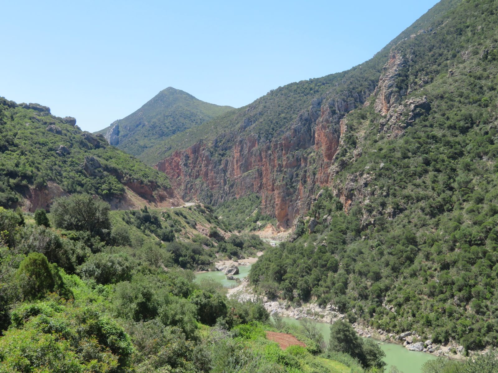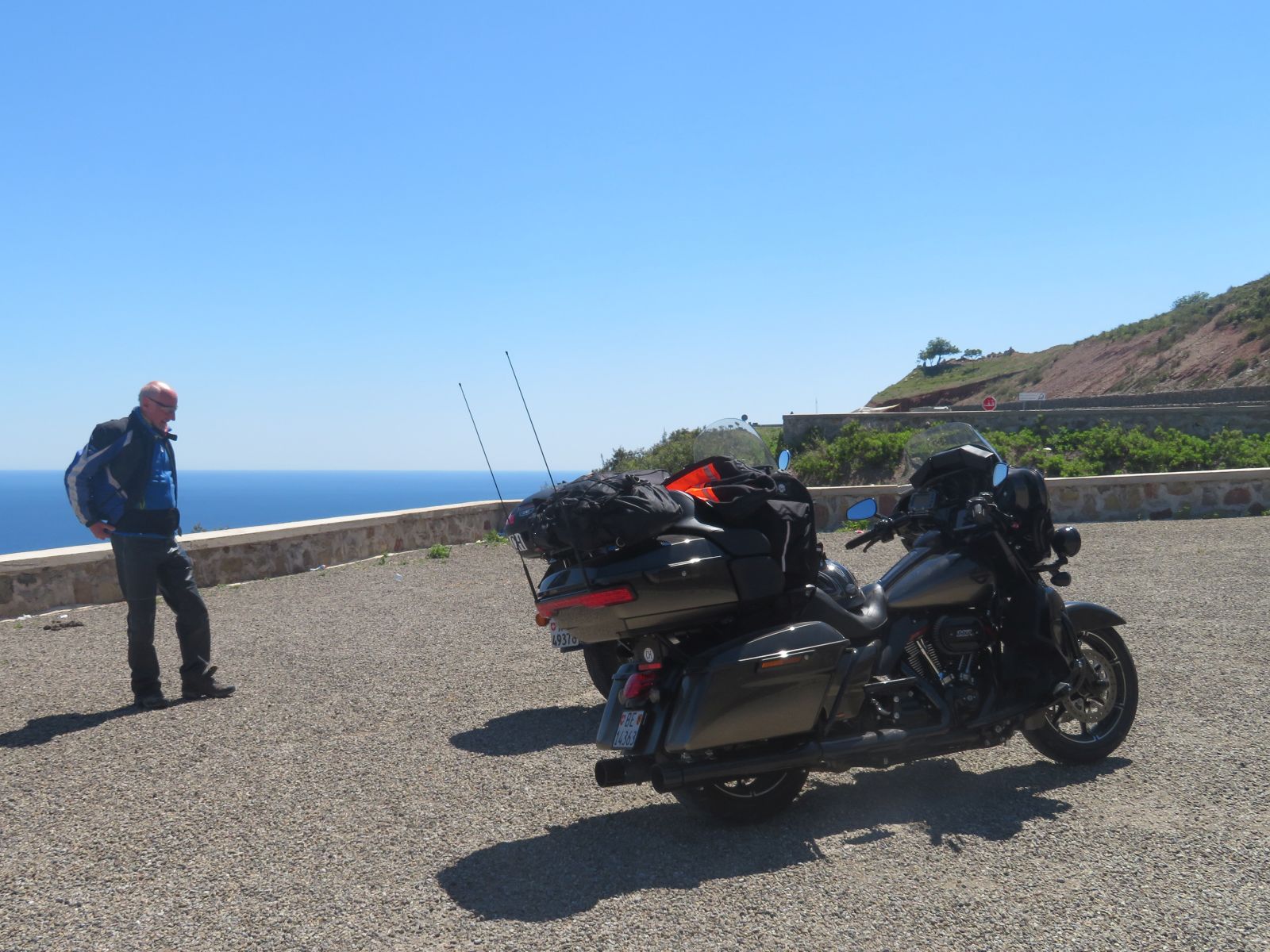 Da die Nacht doch recht kurz war und wir was von Chefchauen sehen wollten entschlossen wir uns zu der kürzeren Route. Diese führte uns erstmals auf einer Nebenstrasse durch die Hügel nach Tetouan. Hier erreichten wir das Mittelmeer wo die neu gebaute Küstenstrasse zu zügigem Kurvenfahren einlud.
