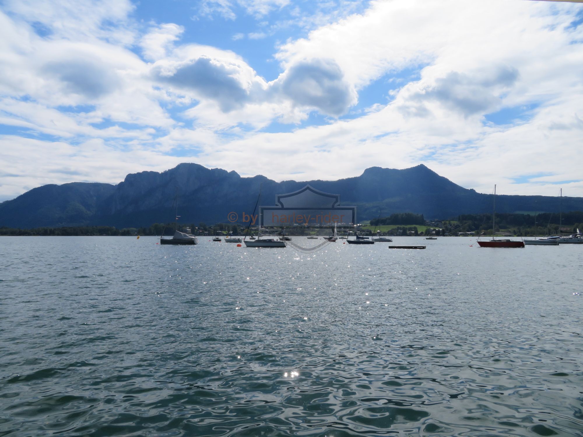 Nach den obligaten Einkäufen und sonstigen Stärkungen war die Zeit soweit vorgerückt, dass wir auf den Stadtbesuch von Salzburg verzichteten. So ging die Tour weiter zum Salzburgring und dann zum Mondsee, an dessen Ufern wir einen Mittags- / Zvierihalt machten. Danach folgte eine der schönsten bisherigen Strecken entlang des Mondsees und über 'Maria an der Klamm' zurück zum Urzn auf dem Gmunderberg.