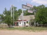 Adrian hat sich, ausser dem 'Midpoint Café', auch schon zu einer 'echten' Ghost Town entwickelt, ein verfallenes Haus nach dem andern. Hätte das Café nicht diese spezielle Lage, wäre hier wohl gar nichts mehr intakt wie kurze Zeit später in Glenrio an der Grenze zu New Mexiko.