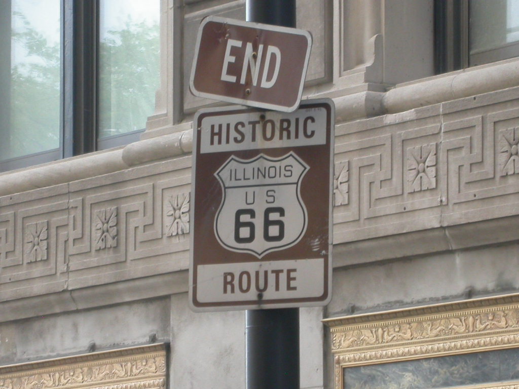 Da es am Freitag zeitlich nicht drinnen liegt mit den Bikes den Startpunkt der Route 66 aufzusuchen, nun halt zu Fuss. Von der Bahnstation 'Jackson' geht es entlang diese Strasse zuerst mal unter dem berühmten 'Loop' durch zur Kreuzung Jackson / Michigan, wo der beginn der Route 66 ist. Doch oweh... da steht ja 'END' of Route 66, wir sind doch aber erst am Anfang. Des Rätsels Lösung : Jackson Blvd. ist mittlerweile eine Einbahnstrasse und somit das Ende für allfällig West - Ost Reisende. Ein Block weiter an der Adams Street findet sich dann das Begin-Schild.