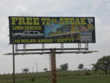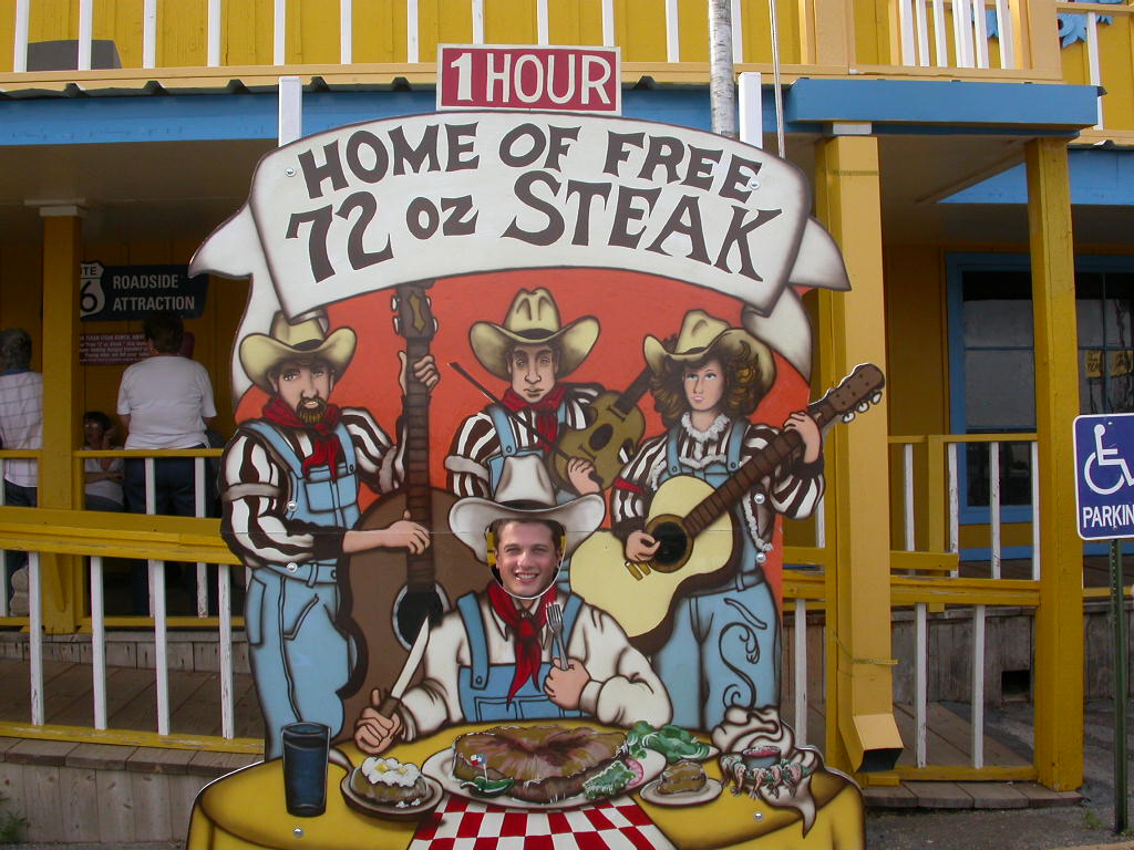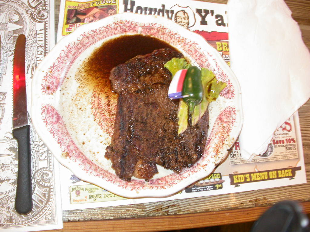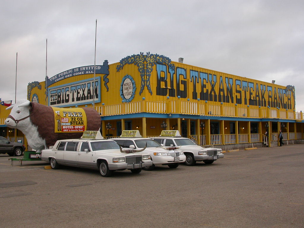 Quartier wurde heute auf der 'Big Texan Steak Ranch' bezogen und in diesem legendären Steakhouse stärkten wir uns dann auch entsprechend mit einem schönen Stück Fleisch. Auf das 72 Unzen (ca. 2 kg) Stück verzichteten wir wohlweisslich, aber so 16 Unzen hatten es auch schon in sich.