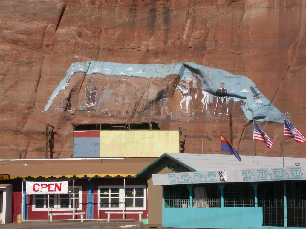 Die restliche Fahrt zu unserem Ziel wurde noch durch 'Jack-Rabbit Trading-Post', den Besuch des Meteor-Kraters, die von den Eagles besungene Strassenecke in Winslow, der Ghost-Town 'Two Guns' und den 'Two Arrows' unterbrochen.