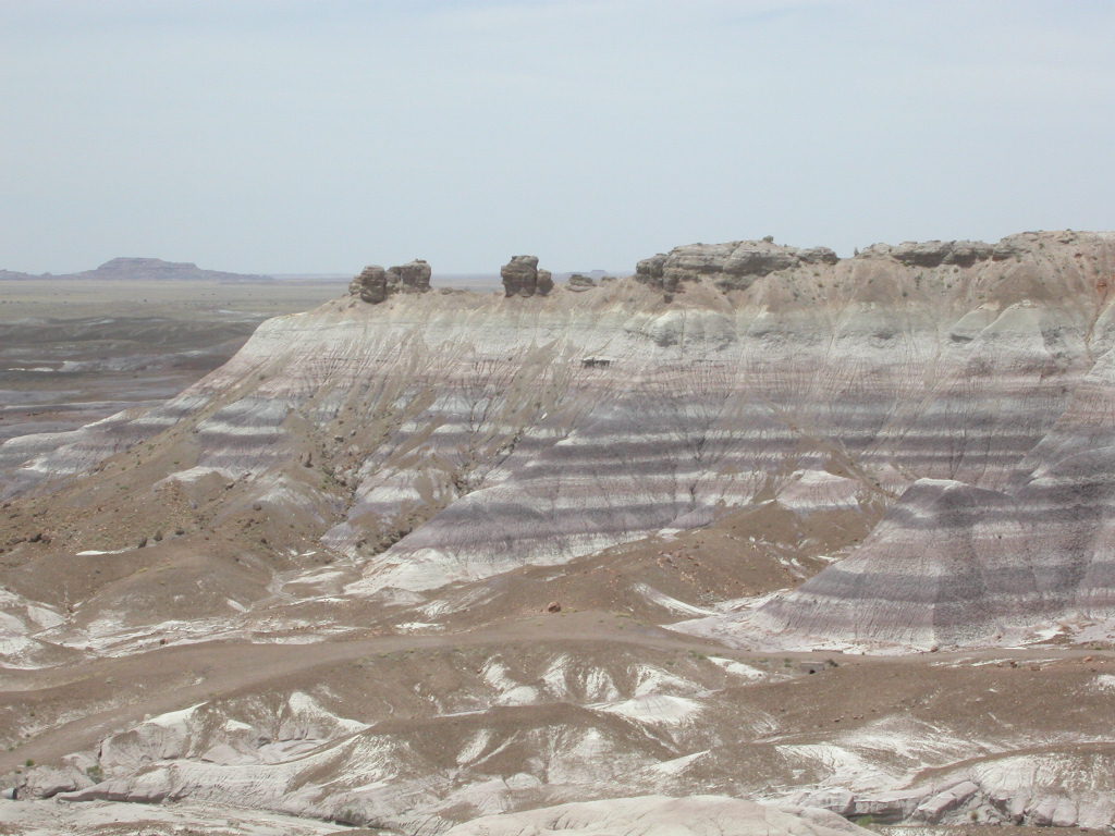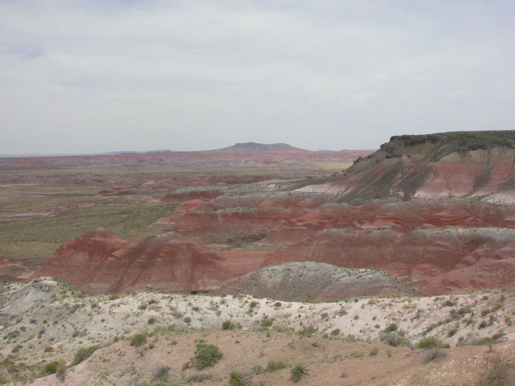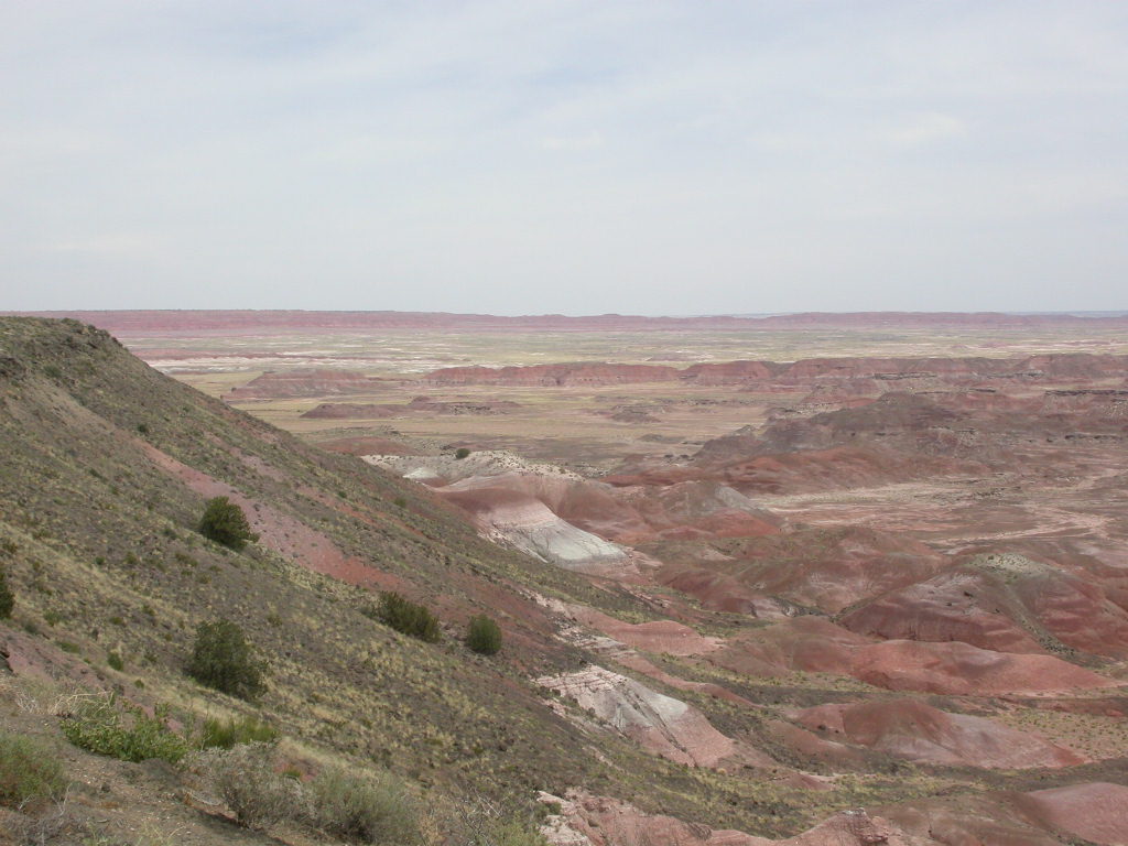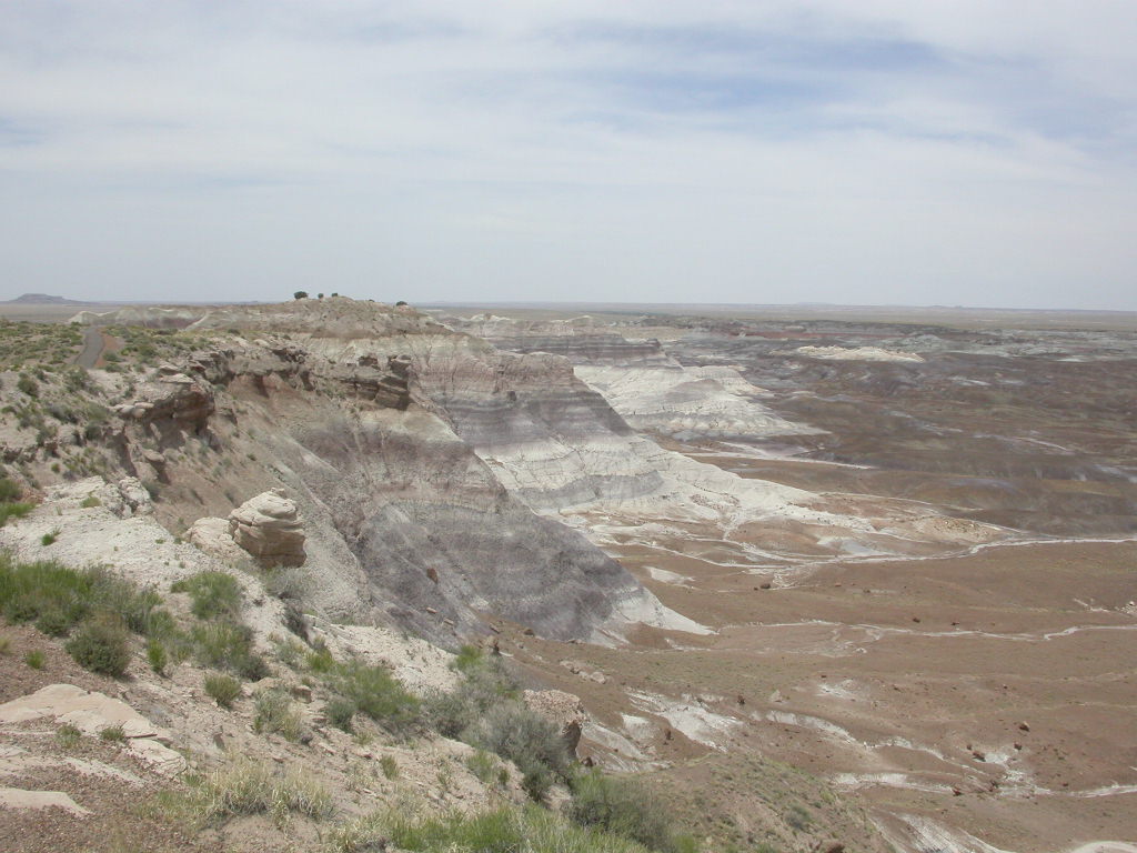 Ein erster Nationalpark Höhepunkt dieser Reise ist die Fahrt entlang der 'Painted Dessert' und durch den 'Petrified Forest'. Es ist schon erstaunlich, was hier in der flachen Prärie plötzlich für Zeitzeugen der Erdentwicklung zum Vorschein treten. Sogar ein kleines Mahnmal für die 'Mother-Road' ist auf der Strecke vorhanden.
