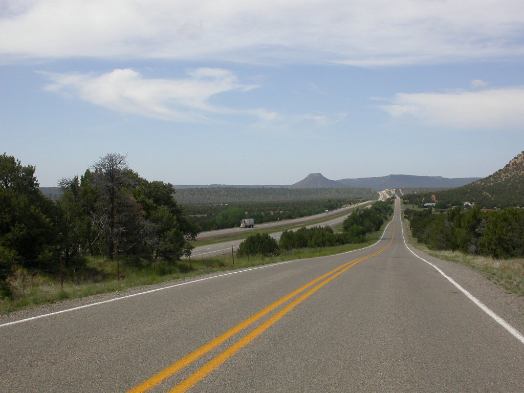 Durch die endlose Prärie New Mexikos fahren wir einmal mehr auf einer der ersten Linienführung (vor 1937) der Route 66, welche über Las Vegas und Santa Fe führt, anstatt direkt westlich nach Albuquerque zu gelangen.