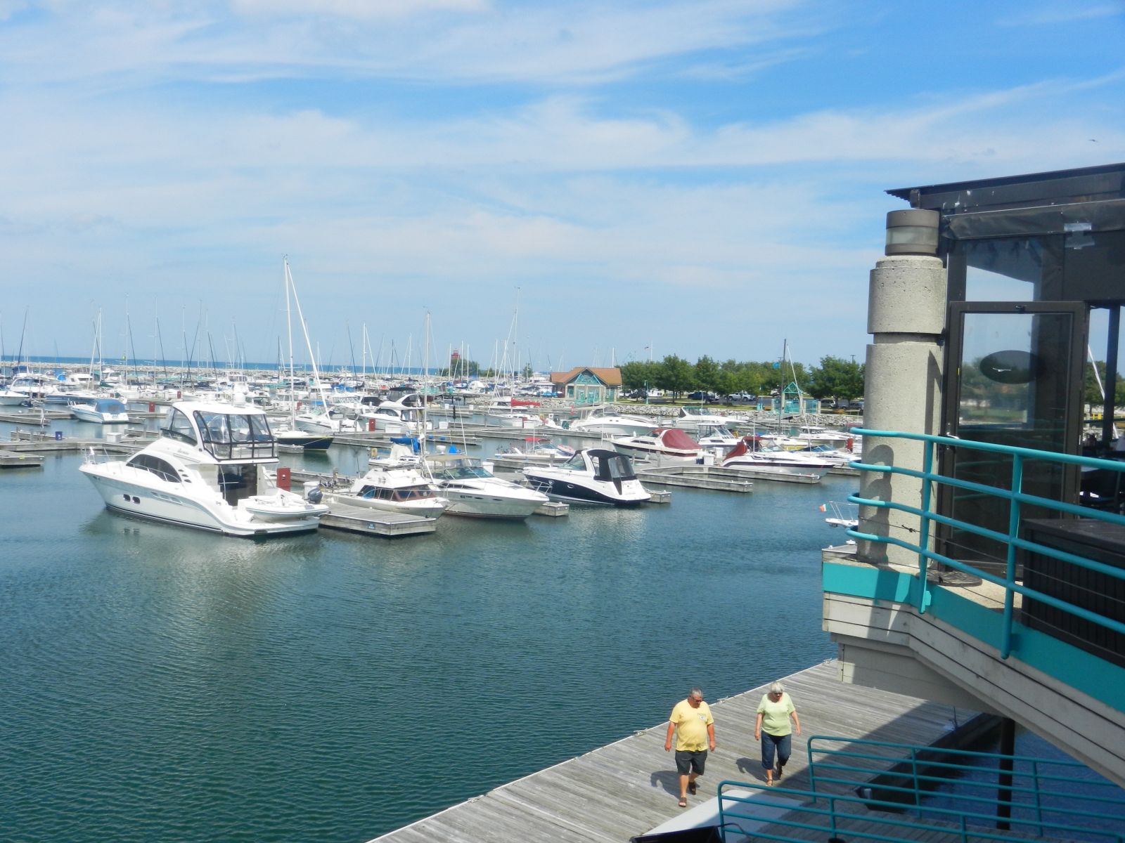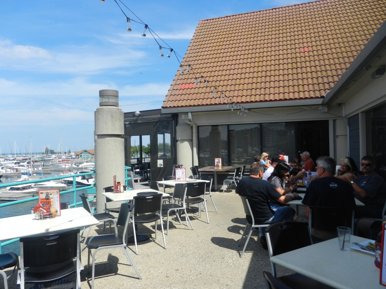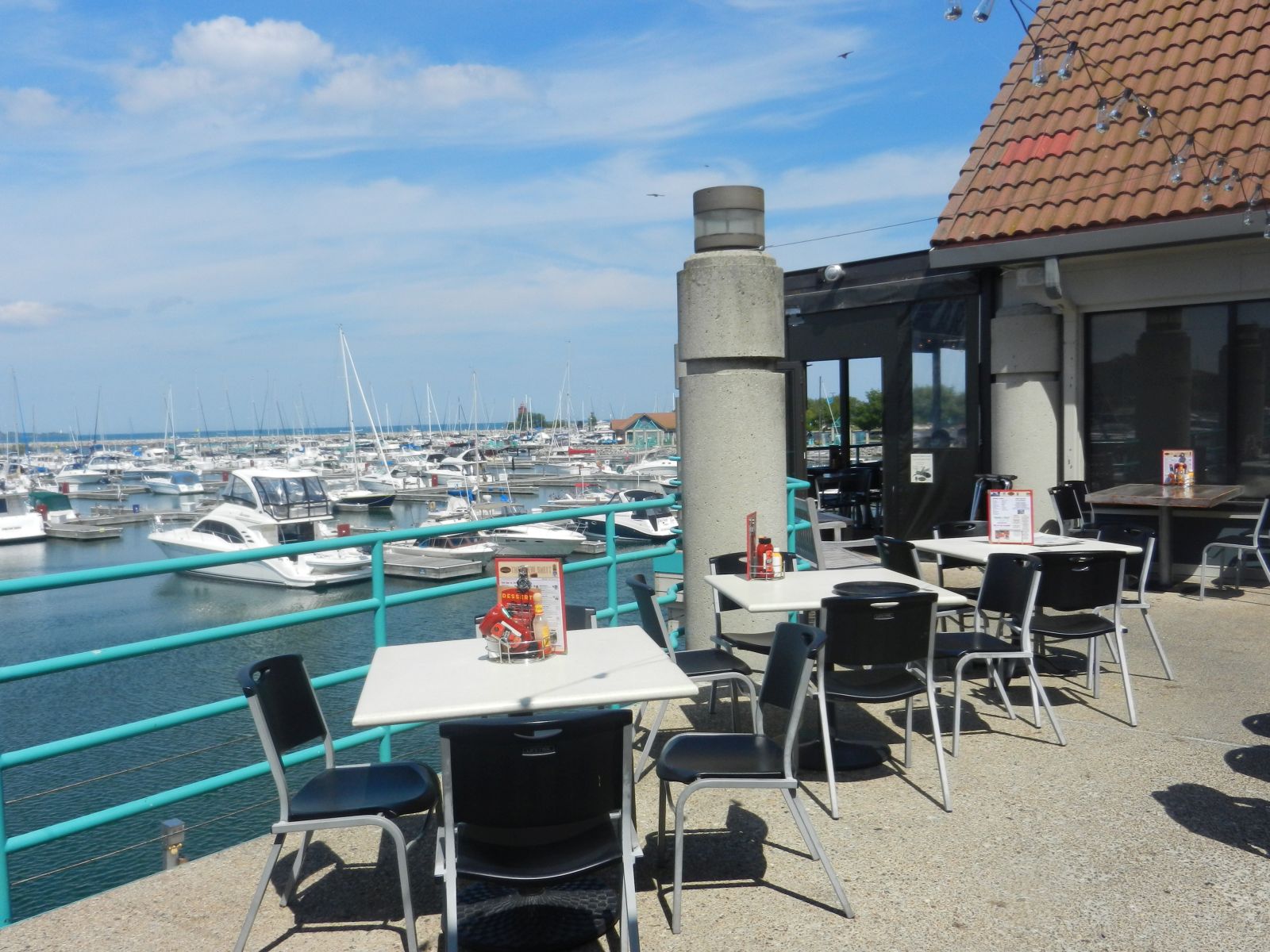 Kaum auf dem Highway zurück nach Chicago verspürten wir doch langsam Hunger und entschlossen uns an Stelle ener Kurzvisite von Chicago Downtown unsere kulinarischen Bedürnisse zu befriedigen. So fuhr ich vom Highway weg zum Lake Michigan, in der Hoffnung an dessen Ufern ein schönes Lokal zu finden. Leichter gesagt als getan, es dauerte doch seine Zeit bis wir im Hafen von Racine fündig wurden. Auf der Terrasse des Reef Point Marina Restaurants genossen wir ein wohlschmeckendes Essen.