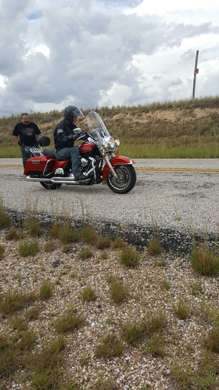 Kurz nach dem Tanken in Alanreed hatten wir unsere einzige Panne auf der ganzen Tour, bei Sandros Sportster riss das Kupplungskabel. Also Gepäck ausladen, Ersatzmaschine raus, Pannenfahrzeug hinein und das Gepäck hinterher. Diese ganze Aktion dauerte kene 10 Minuten da alle einander halfen, dies zeigte einmal mehr was für eine tolle Gruppe da zusammen gekommen ist. Sandro war zuerst etwas skeptisch aber er freundete sich mit der Road-King Meile um Meile mehr an, und zum Schluss war er ganz happy mit dieser doch etwas grösseren Harley.