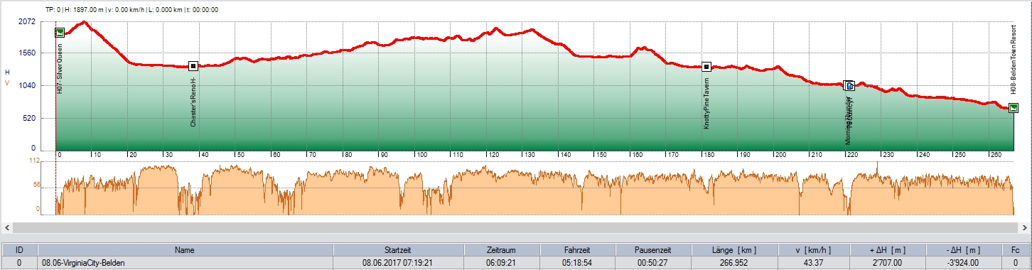 Frühstück gab es keines im Hotel und auch sonst war frühmorgens noch nichts offen, so dass ich erst in Reno mein Frühstück erhielt.