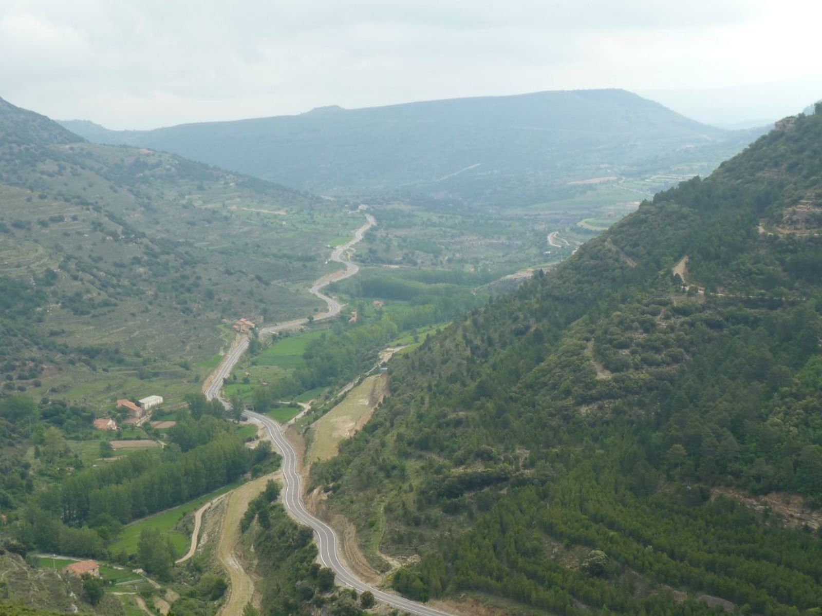 Nach diesem Halt sollte es gemäss Karte weiter kurvenreich durch die Berge gehen. Hier wurde aber vor kurzem gebaut und die neue Strasse zog recht begradigt über Brücken und durch Tunnels an den kleinen Ortschaften vorbei. Auf unserem Weg an den Rio Ebro und dem Castell de  Miravet machten wir noch in Valderrobres einen kurzen Halt.
