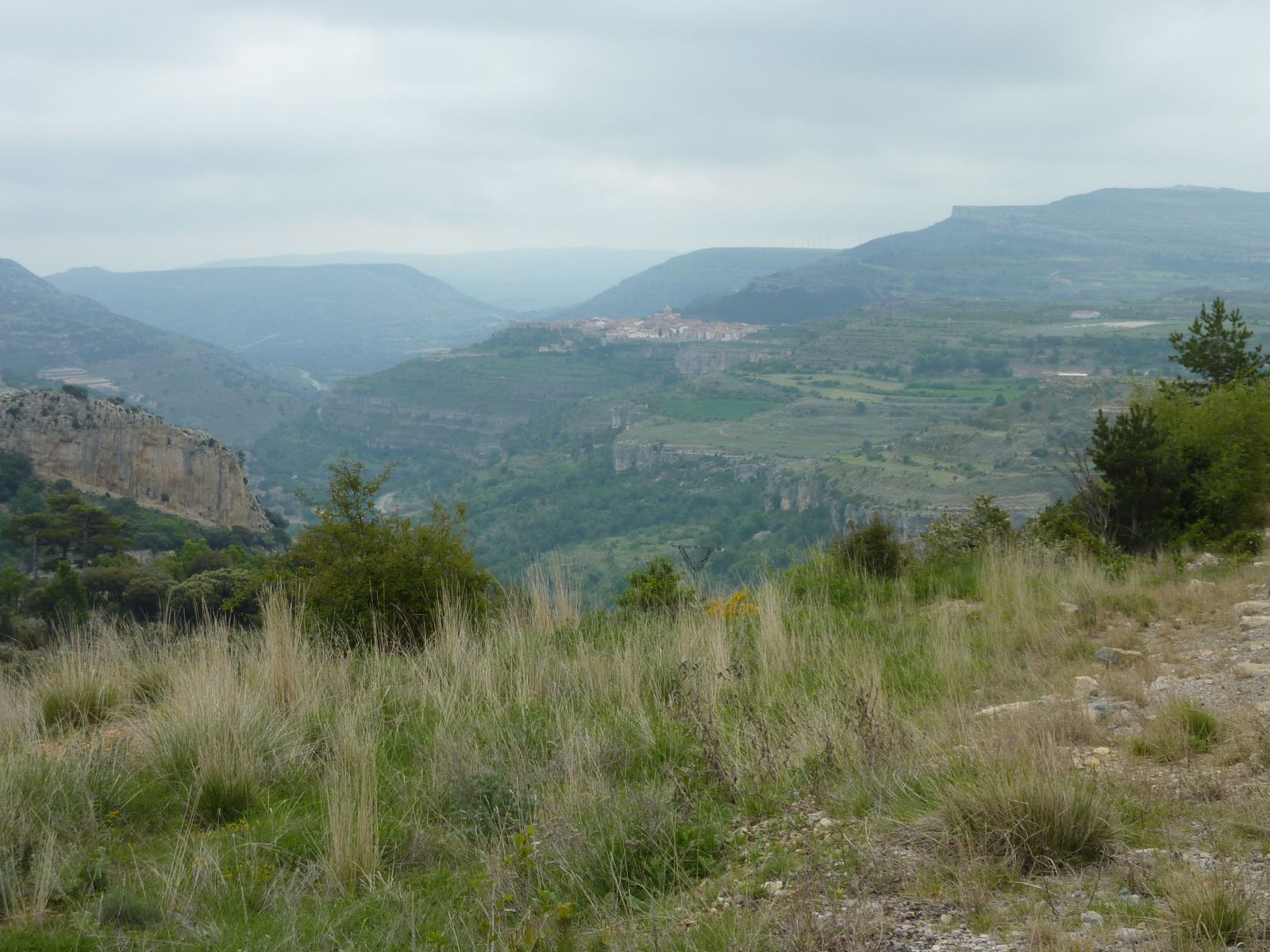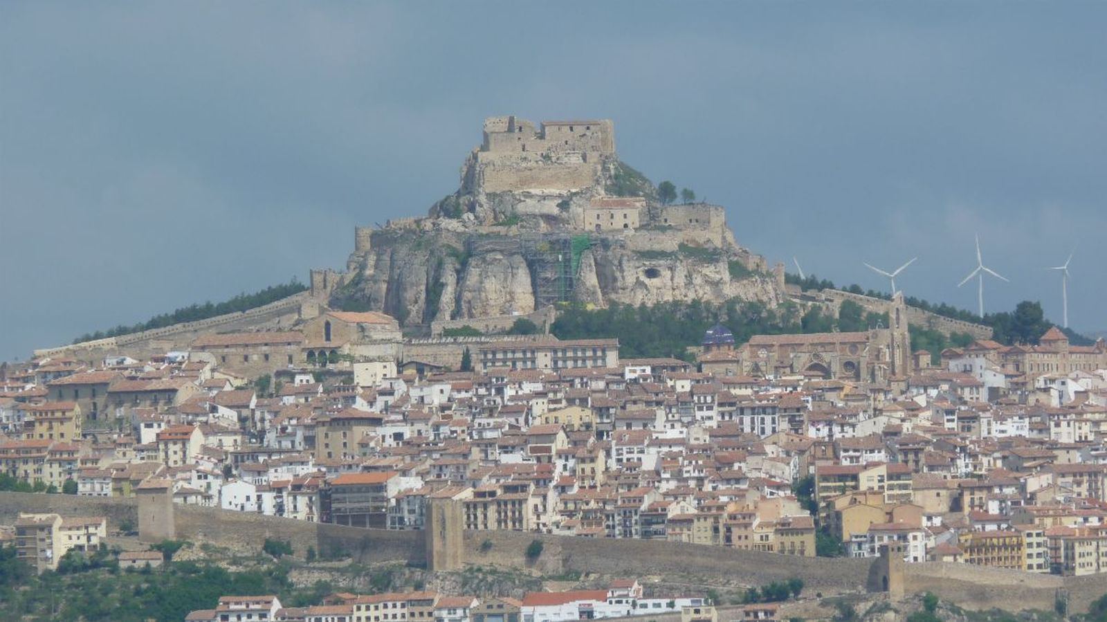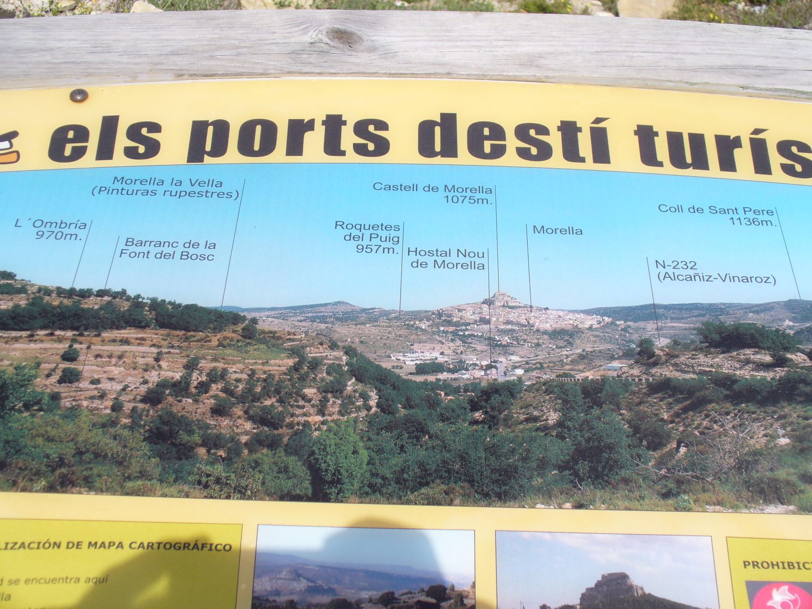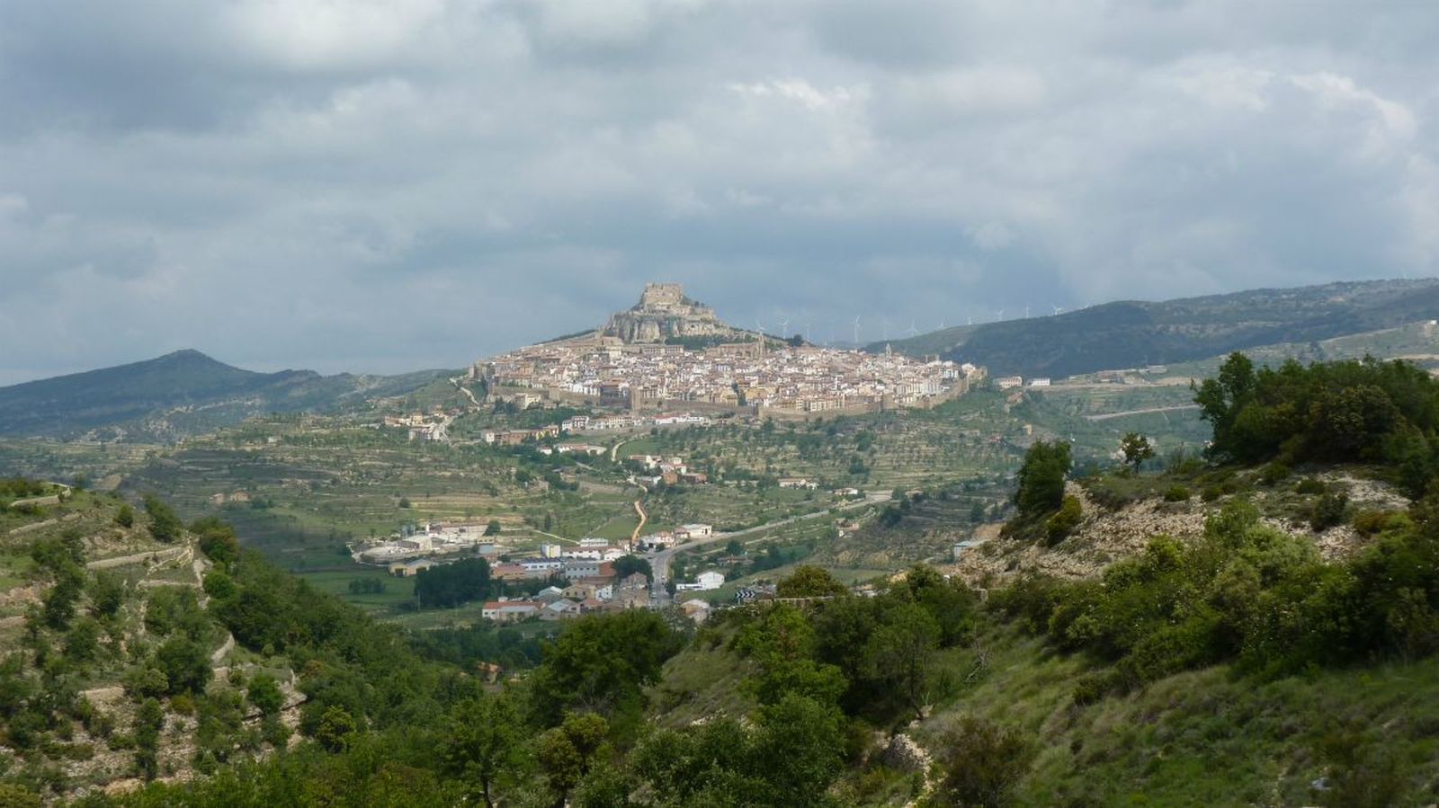 Danach ging es weiter in die Berge von 'El Maestrat'. Plötzlich tauchte der Burghügel von  Morella auf. Bei einem Aussichtspunkt wurden erste Fotos von diesem markanten Hügel mit seiner kompakt bebauten Stadt und der sehr gut erhaltenen Stadtmauer geschossen. Wir beschlossen dort für eine Besichtigung inkl. Mittagsrast anzuhalten.