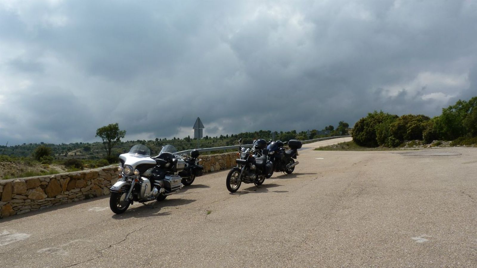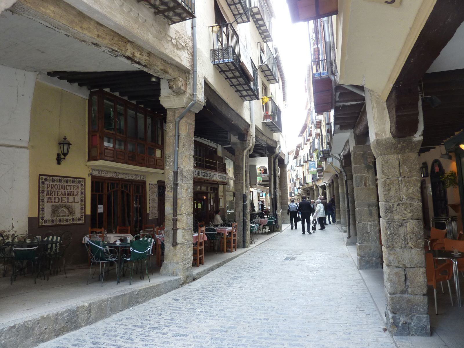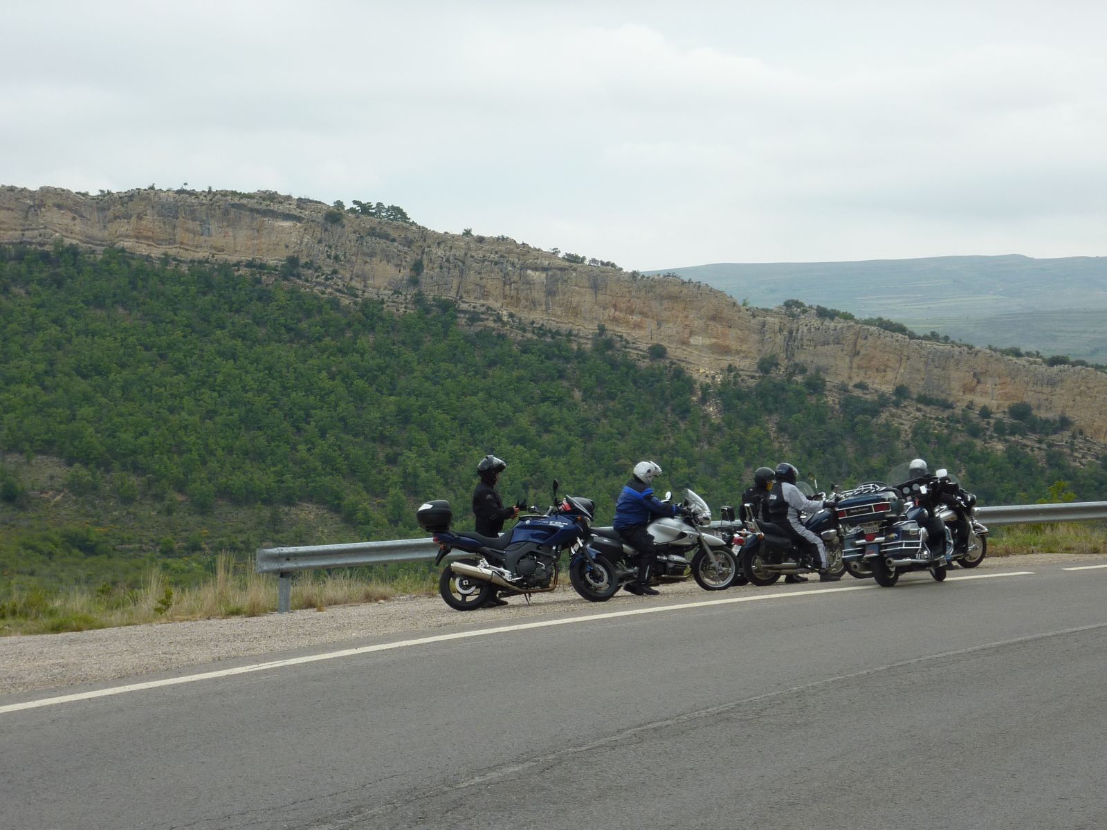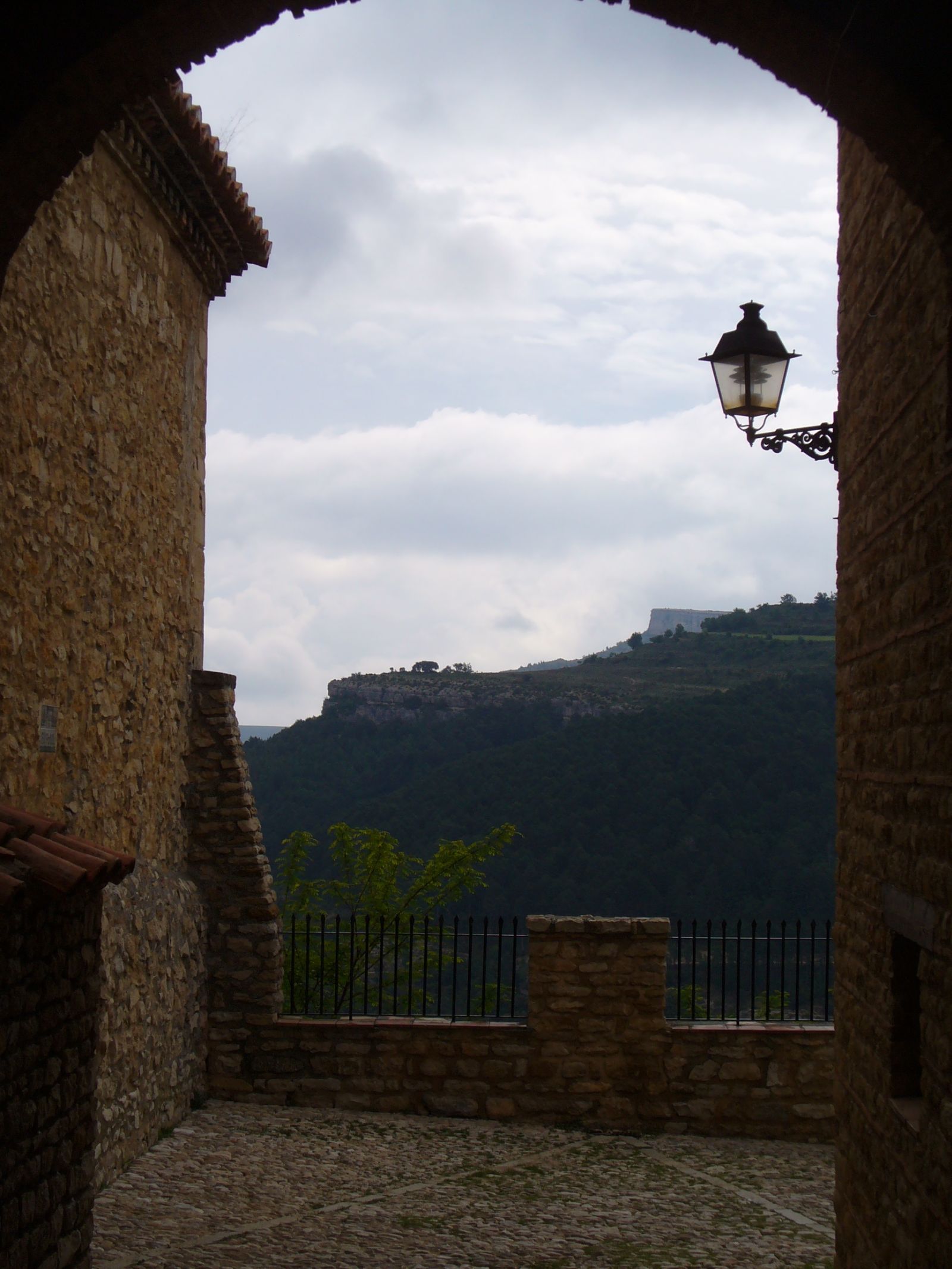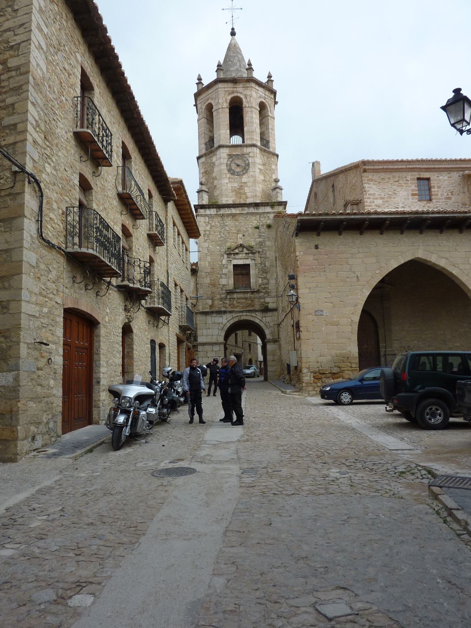 Heute Morgen war erstmal noch Regenkleidung angesagt und danach fuhren wir durch die schmalen, verwickelten und steilen Gässchen vom Hotel auf die Strasse hinunter. Die Fahrt durch die Sierra de Gudar führteüber 4 Pässe bis zu unserem Kaffeehalt in   Cantavieja. Vor dem Kaffeehalt fuhren wir aber noch in die Altstadt zur Kirche und Burg  hinauf um ein paar Fotos zu schiessen.