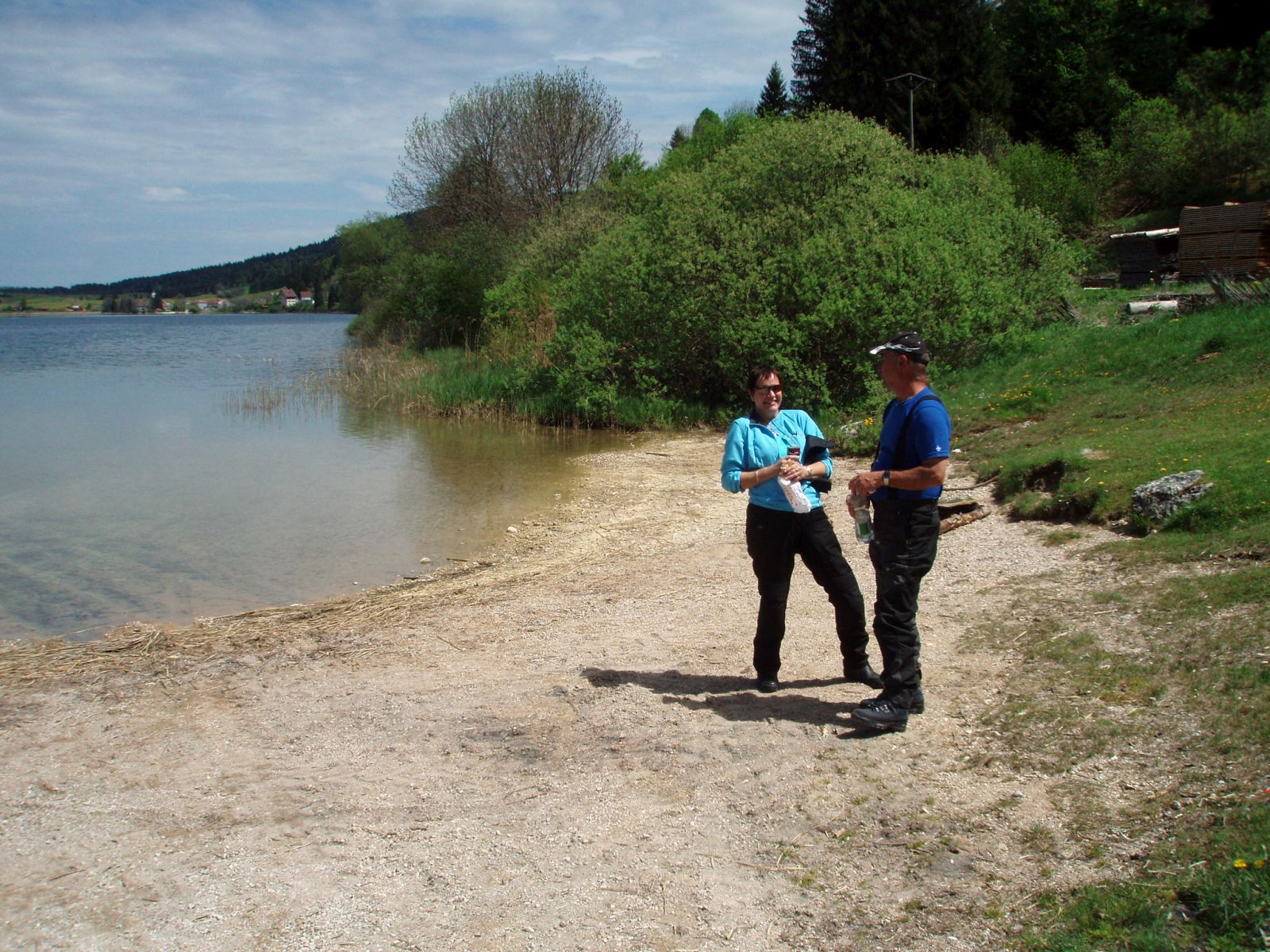 Nachdem also alle ihre Zwischenverpflegung eingekauft und in den Motorrädern verstaut hatten fuhren wir weiter dem Doubs entlang nach Pontarlier und weiter am Lac de Saint-Pont vorbei Richtung Saint-Claude. Schön gelegene Parkplätze oder viel lieber Picknickplätze waren hier leider keine zu finden. Am Lac de l'Abbaye fanden wir dann endlich etwas abseits der Strasse ein Plätzchen um unsere Sandwichs zu essen.